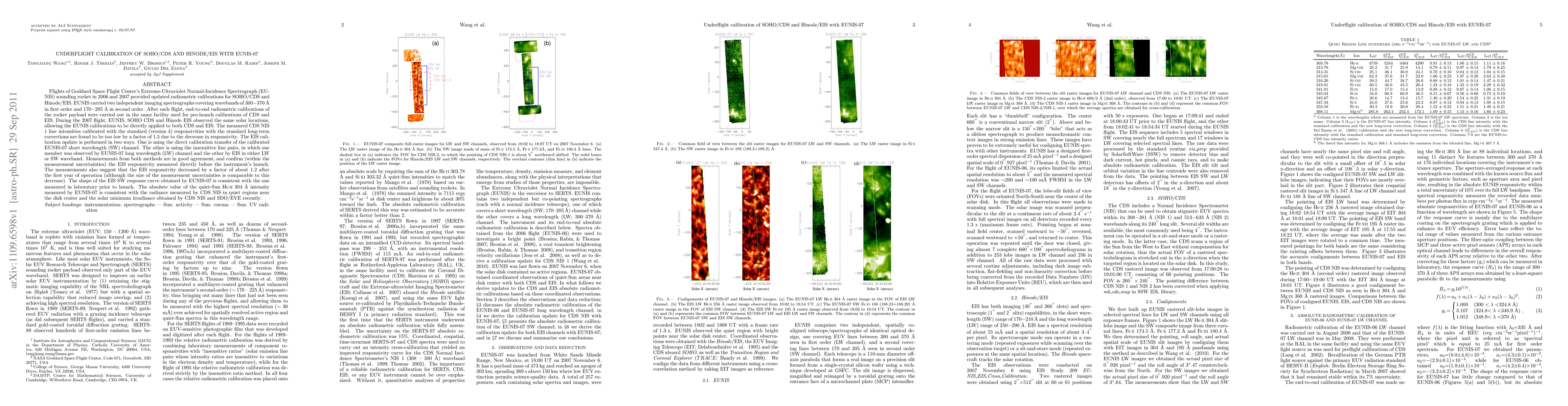 This paper details the radiometric calibration updates for SOHO/CDS and Hinode/EIS using EUNIS sounding rocket flights in 2006 and 2007. The EUNIS calibrations revealed a 1.5 factor decrease in CDS responsivity and a 1.2 factor decrease in EIS responsivity post-launch, with both methods of EIS calibration yielding consistent results.