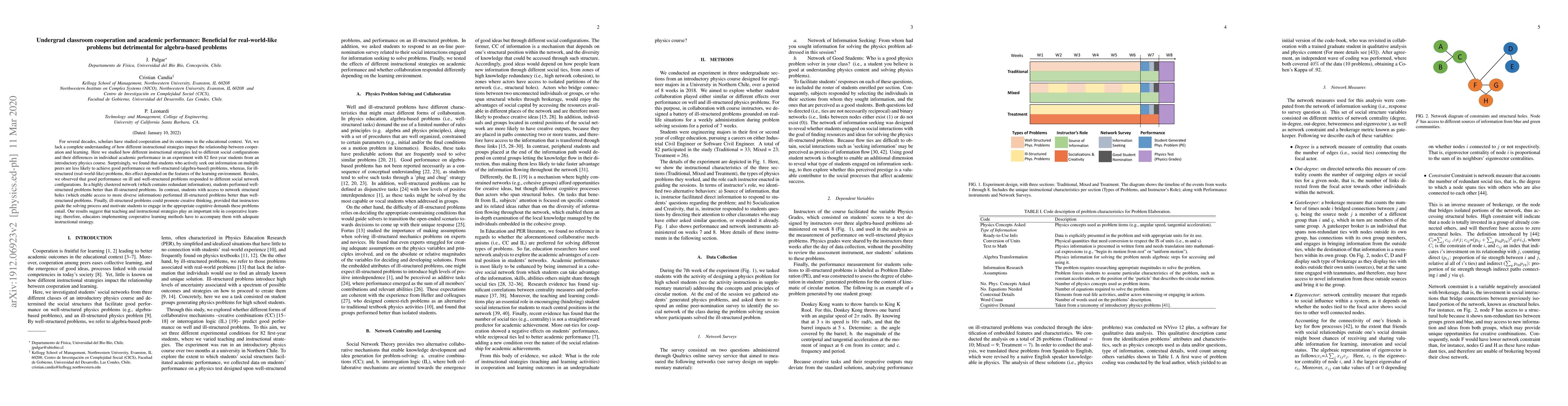 Cooperative learning in classrooms can be beneficial for real-world problems but detrimental to algebra-based problems, suggesting that instructors need to adapt their teaching strategies to optimize student performance.
