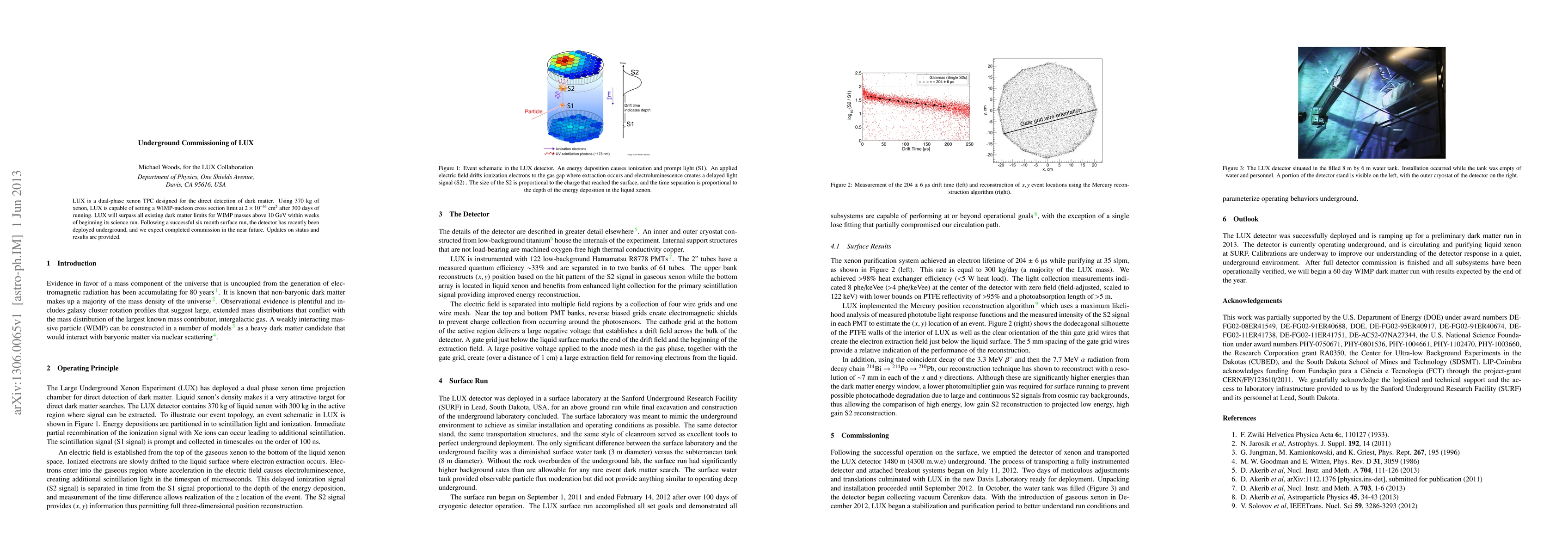 The LUX experiment has successfully commissioned underground detection of dark matter, setting a new limit on WIMP-nucleon cross-sections and surpassing existing limits for high-mass WIMPs.