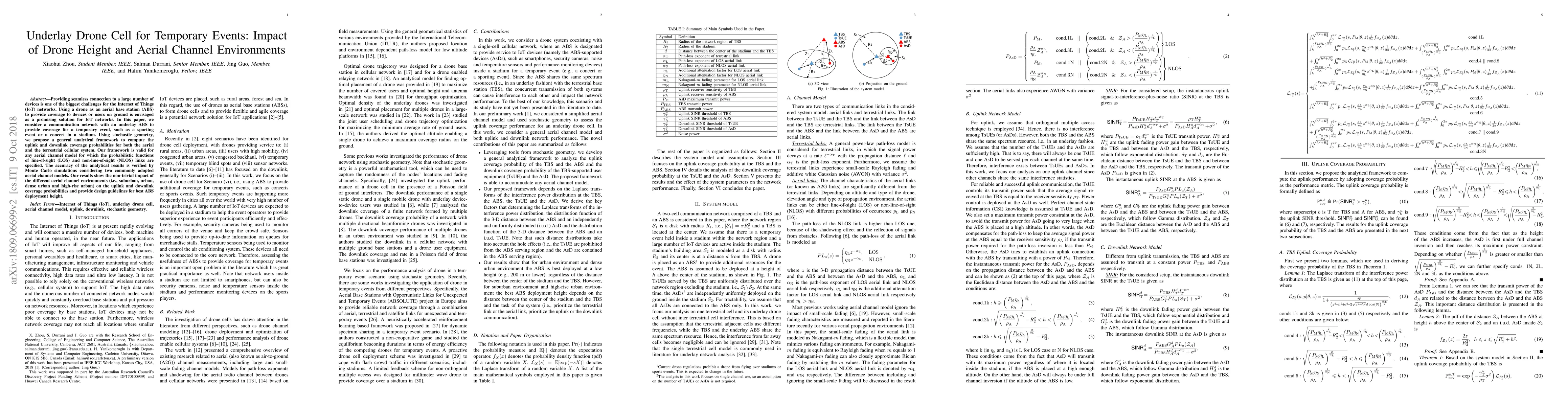 The work introduces a comprehensive analytical approach for evaluating the performance of underlay drone cells in providing temporary event coverage, offering insights into the effects of different aerial channel environments and ABS deployment heights.