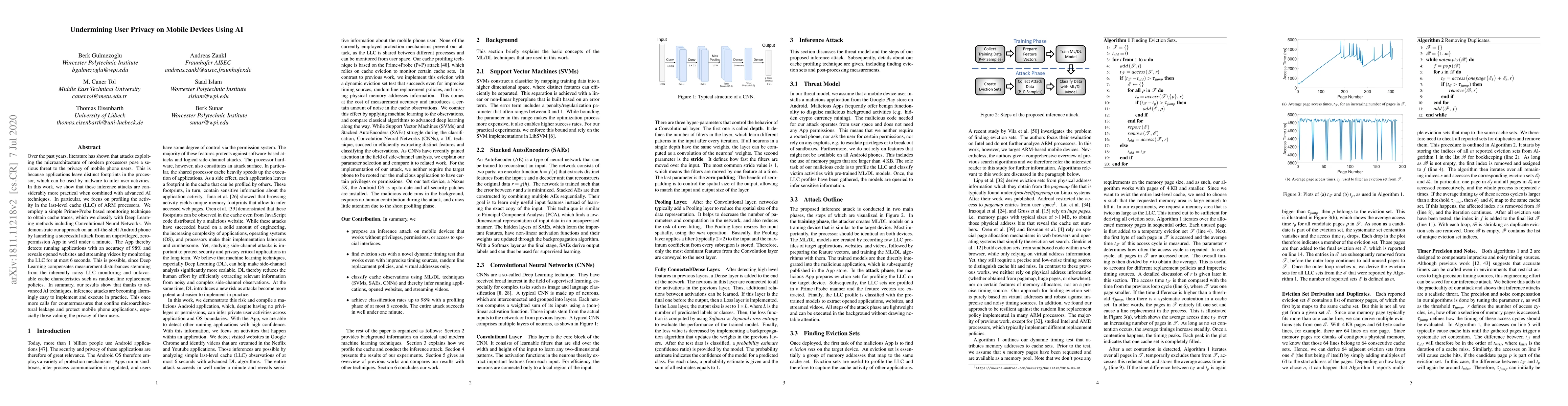 Over the past years, literature has shown that attacks exploiting the microarchitecture of modern processors pose a serious threat to the privacy of mobile phone users. This is because applications leave distinct footprints in the processor, which can be used by malware to infer user activities. In this work, we show that these inference attacks are considerably more practical when combined with advanced AI techniques. In particular, we focus on profiling the activity in the last-level cache (LLC) of ARM processors. We employ a simple Prime+Probe based monitoring technique to obtain cache traces, which we classify with Deep Learning methods including Convolutional Neural Networks. We demonstrate our approach on an off-the-shelf Android phone by launching a successful attack from an unprivileged, zeropermission App in well under a minute. The App thereby detects running applications with an accuracy of 98% and reveals opened websites and streaming videos by monitoring the LLC for at most 6 seconds. This is possible, since Deep Learning compensates measurement disturbances stemming from the inherently noisy LLC monitoring and unfavorable cache characteristics such as random line replacement policies. In summary, our results show that thanks to advanced AI techniques, inference attacks are becoming alarmingly easy to implement and execute in practice. This once more calls for countermeasures that confine microarchitectural leakage and protect mobile phone applications, especially those valuing the privacy of their users.