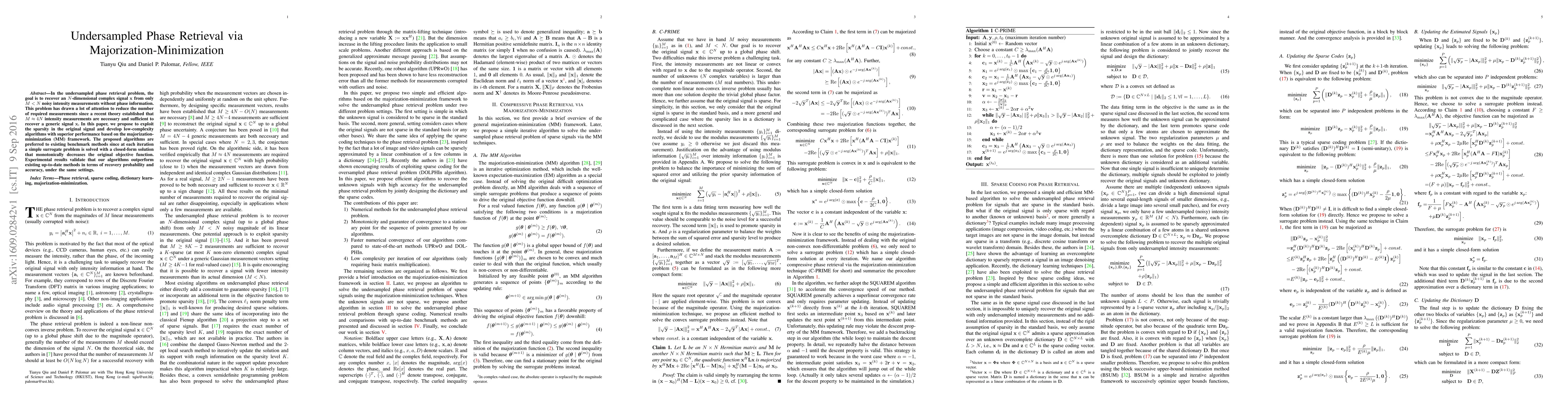 Researchers developed a new algorithm for recovering an N-dimensional complex signal from undersampled noisy intensity measurements using majorization-minimization. Their method outperforms existing methods in terms of recovery probability and accuracy.