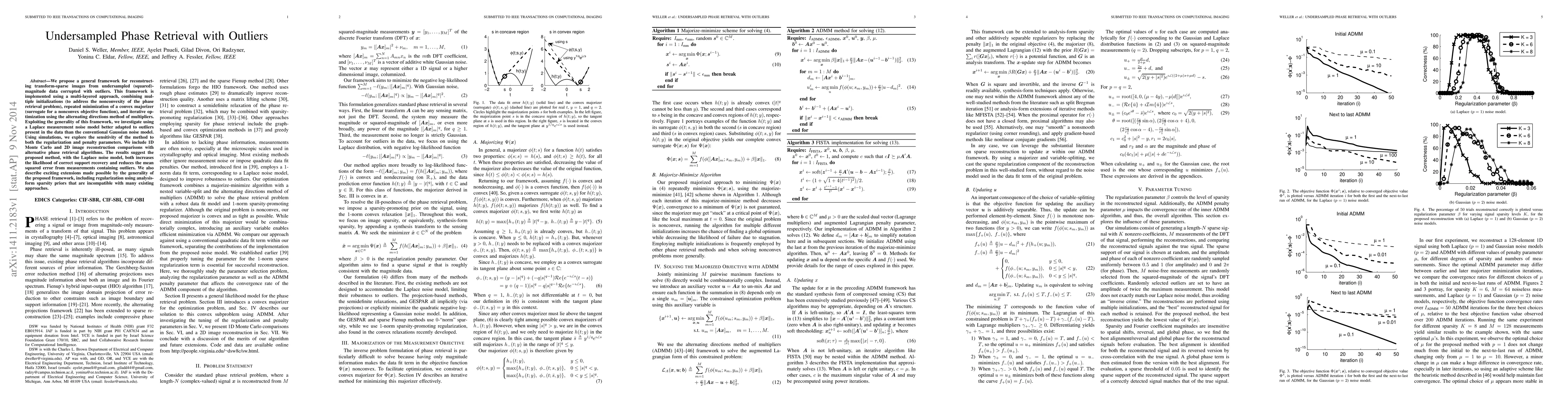A new method for reconstructing images from undersampled data with outliers has been proposed, using a multi-layered approach that combines multiple initializations, convex majorization, and iterative optimization, yielding improved support recovery and reduced error.