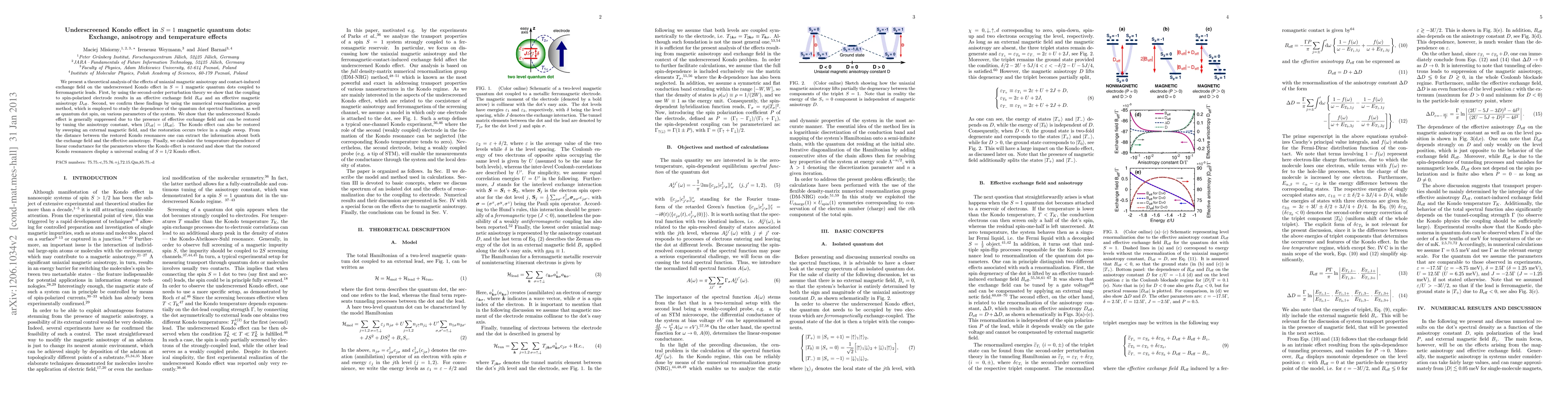 This paper theoretically analyzes the underscreened Kondo effect in S=1 magnetic quantum dots under uniaxial anisotropy and exchange fields, showing that it can be suppressed but restored by tuning anisotropy or an external magnetic field, and it exhibits a universal scaling behavior at low temperatures.