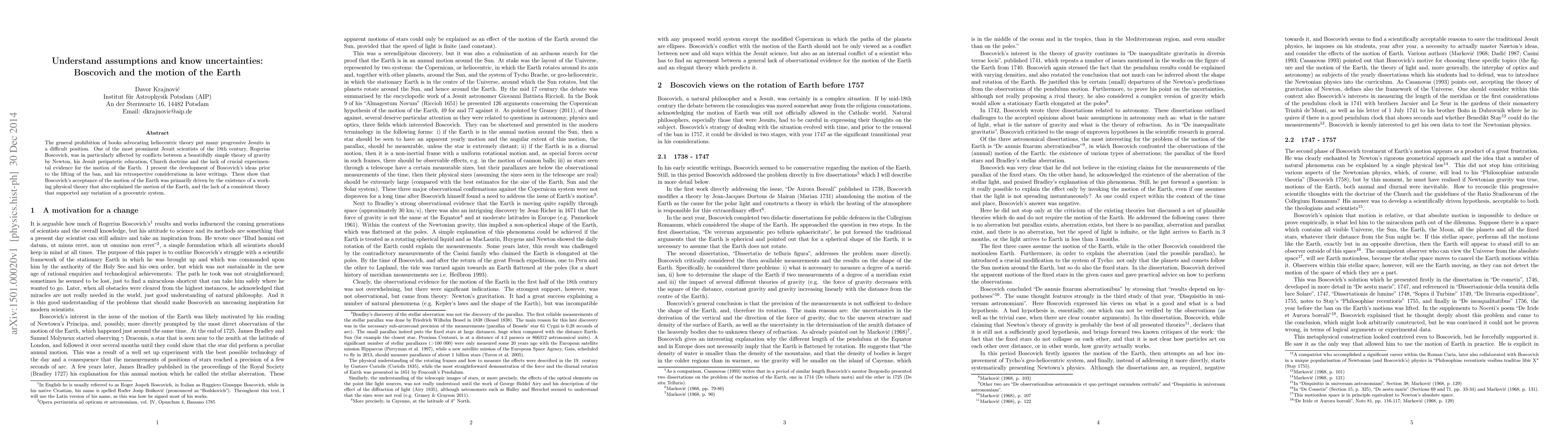 The general prohibition of books advocating heliocentric theory put many progressive Jesuits in a difficult position. One of the most prominent Jesuit scientists of the 18th century, Rogerius Boscovich, was in particularly affected by conflicts between a beautifully simple theory of gravity by Newton, his Jesuit peripatetic education, Church doctrine and the lack of crucial experimental evidence for the motion of the Earth. I present the development of Boscovich's ideas prior to the lifting of the ban, and his retrospective considerations in later writings. These show that Boscovich's acceptance of the motion of the Earth was primarily driven by the existence of a working physical theory that also explained the motion of the Earth, and the lack of a consistent theory that supported any variation of a geocentric system.