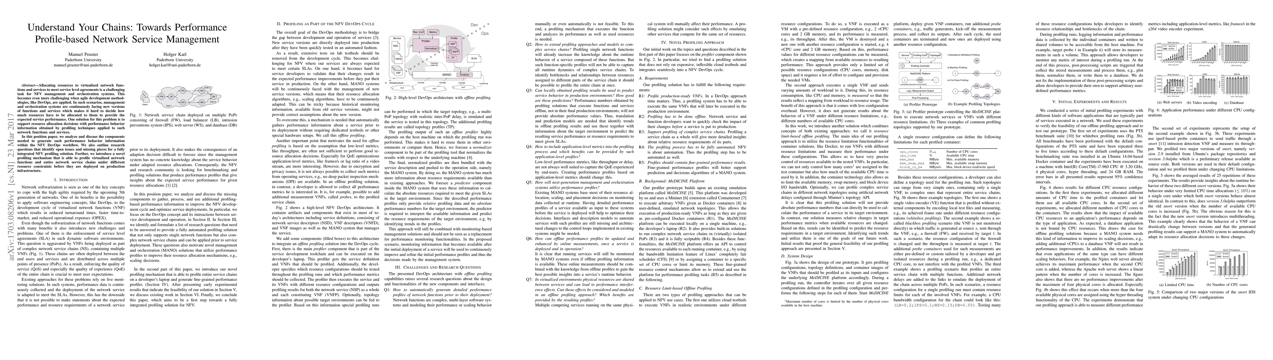 Allocating resources to virtualized network functions and services to meet service level agreements is a challenging task for NFV management and orchestration systems. This becomes even more challenging when agile development methodologies, like DevOps, are applied. In such scenarios, management and orchestration systems are continuously facing new versions of functions and services which makes it hard to decide how much resources have to be allocated to them to provide the expected service performance. One solution for this problem is to support resource allocation decisions with performance behavior information obtained by profiling techniques applied to such network functions and services. In this position paper, we analyze and discuss the components needed to generate such performance behavior information within the NFV DevOps workflow. We also outline research questions that identify open issues and missing pieces for a fully integrated NFV profiling solution. Further, we introduce a novel profiling mechanism that is able to profile virtualized network functions and entire network service chains under different resource constraints before they are deployed on production infrastructure.