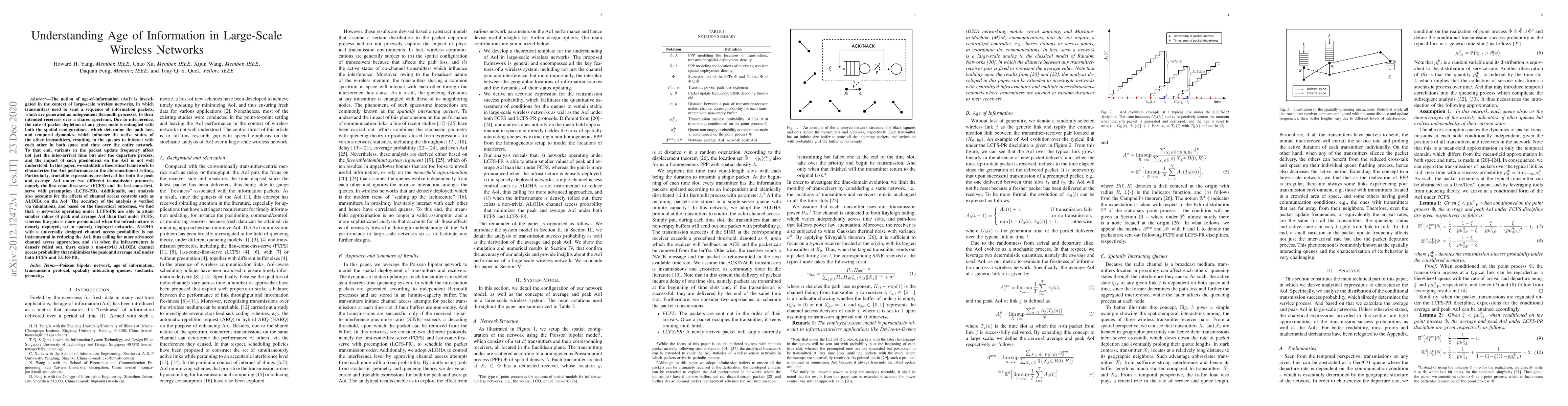 This paper investigates age-of-information (AoI) in large-scale wireless networks, deriving theoretical frameworks for peak and average AoI under FCFS and LCFS-PR protocols. The study finds that LCFS-PR achieves lower AoI values, especially in densely deployed networks, while advanced channel access strategies are needed in sparse networks.