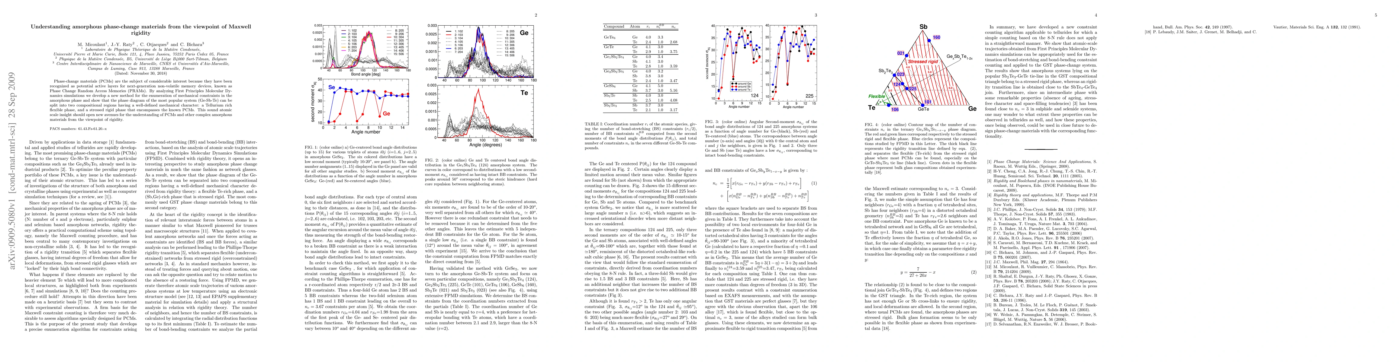 Phase-change materials (PCMs) are the subject of considerable interest because they have been recognized as potential active layers for next-generation non-volatile memory devices, known as Phase Change Random Access Memories (PRAMs). By analyzing First Principles Molecular Dynamics simulations we develop a new method for the enumeration of mechanical constraints in the amorphous phase and show that the phase diagram of the most popular system (Ge-Sb-Te) can be split into two compositional regions having a well-defined mechanical character: a Tellurium rich flexible phase, and a stressed rigid phase that encompasses the known PCMs. This sound atomic scale insight should open new avenues for the understanding of PCMs and other complex amorphous materials from the viewpoint of rigidity.