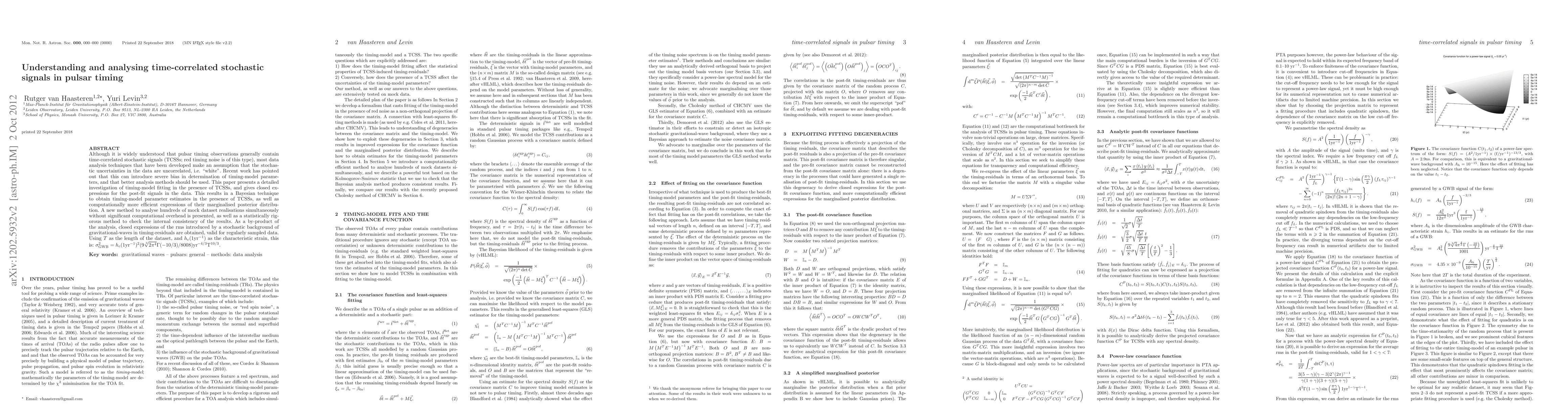 Although it is widely understood that pulsar timing observations generally contain time-correlated stochastic signals (TCSSs; red timing noise is of this type), most data analysis techniques that have been developed make an assumption that the stochastic uncertainties in the data are uncorrelated, i.e. "white". Recent work has pointed out that this can introduce severe bias in determination of timing-model parameters, and that better analysis methods should be used. This paper presents a detailed investigation of timing-model fitting in the presence of TCSSs, and gives closed expressions for the post-fit signals in the data. This results in a Bayesian technique to obtain timing-model parameter estimates in the presence of TCSSs, as well as computationally more efficient expressions of their marginalised posterior distribution. A new method to analyse hundreds of mock dataset realisations simultaneously without significant computational overhead is presented, as well as a statistically rigorous method to check the internal consistency of the results. As a by-product of the analysis, closed expressions of the rms introduced by a stochastic background of gravitational-waves in timing-residuals are obtained. Using $T$ as the length of the dataset, and $h_c(1\rm{yr}^{-1})$ as the characteristic strain, this is: $\sigma_{\rm GWB}^2 = h_{c}(1\rm{yr}^{-1})^2 (9\sqrt[3]{2\pi^4}\Gamma(-10/3) / 8008) \rm{yr}^{-4/3} T^{10/3}$.