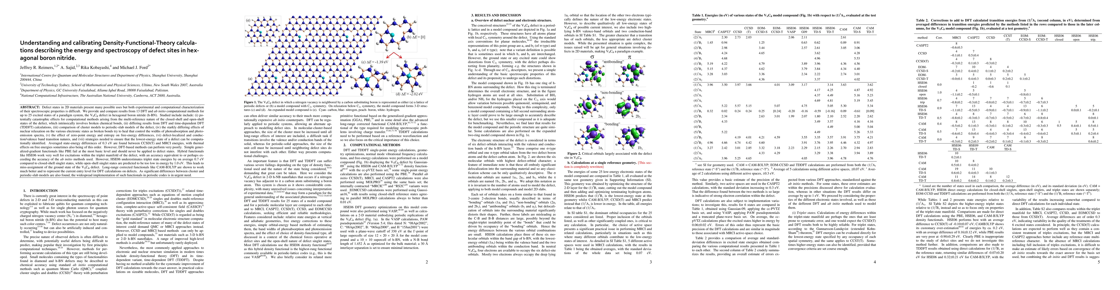 Defect states in 2D materials present many possible uses but both experimental and computational characterization of their spectroscopic properties is difficult. We provide and compare results from 13 DFT and ab initio computational methods for up to 25 excited states of a paradigm system, the VNCB defect in hexagonal boron nitride (h-BN). Studied include include: (i) potentially catastrophic effects for computational methods arising from the multi-reference nature of the closed-shell and open-shell states of the defect, which intrinsically involves broken chemical bonds, (ii) differing results from DFT and time-dependent DFT (TDDFT) calculations, (iii) comparison of cluster models to periodic-slab models of the defect, (iv) the starkly differing effects of nuclear relaxation on the various electronic states as broken bonds try to heal that control the widths of photoabsorption and photoemission spectra, (v) the effect of zero-point energy and entropy on free-energy differences, (vi) defect-localized and conduction/valence band transition natures, and (vii) strategies needed to ensure that the lowest-energy state of a defect can be computationally identified.