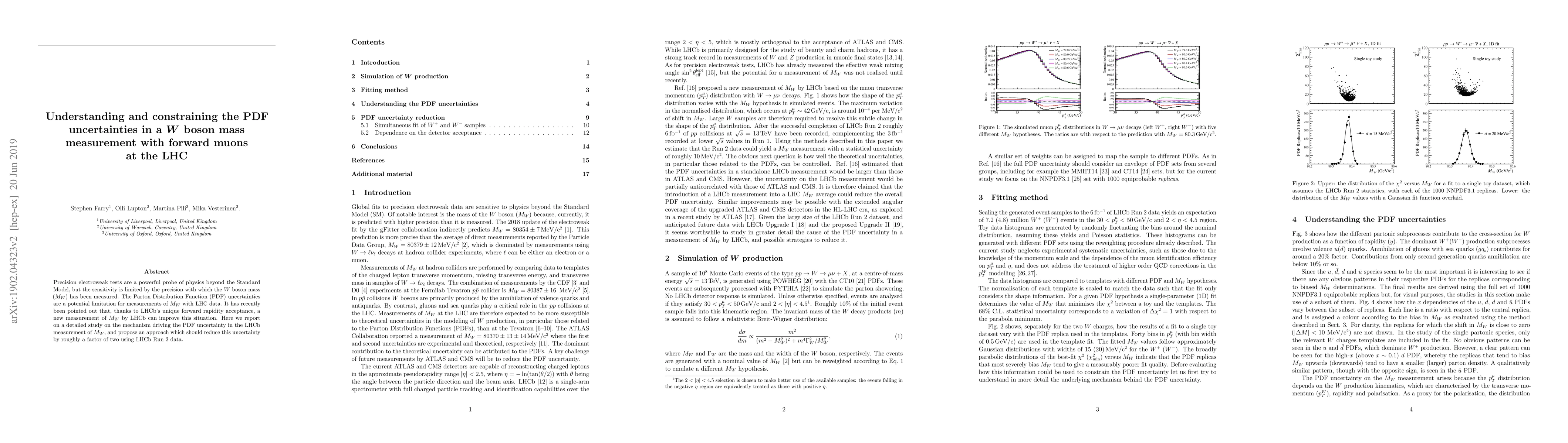 This paper investigates the Parton Distribution Function (PDF) uncertainties affecting the measurement of the W boson mass ($M_W$) using forward muons at the LHCb. It proposes a method to reduce these uncertainties by approximately half, leveraging LHCb's unique forward rapidity acceptance to improve precision electroweak tests.