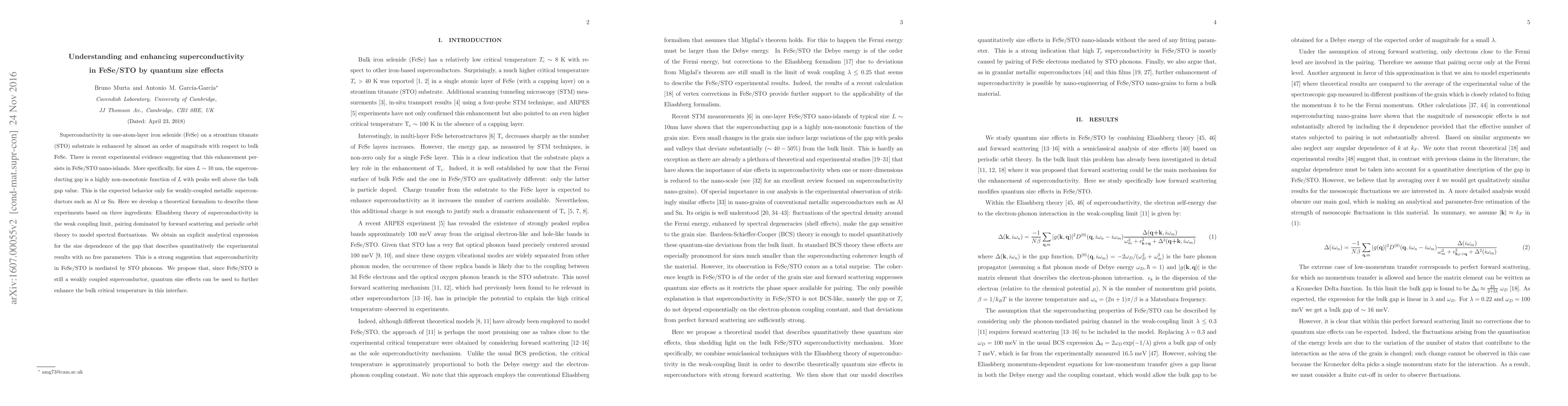 This paper explores how superconductivity in ultra-thin FeSe layers on STO substrates is significantly enhanced compared to bulk FeSe, with a notable non-monotonic dependence on size. The authors develop a theoretical framework combining Eliashberg theory, forward scattering, and periodic orbit theory to explain the observed phenomena, suggesting phonon mediation from STO and proposing that quantum size effects could further boost the critical temperature.