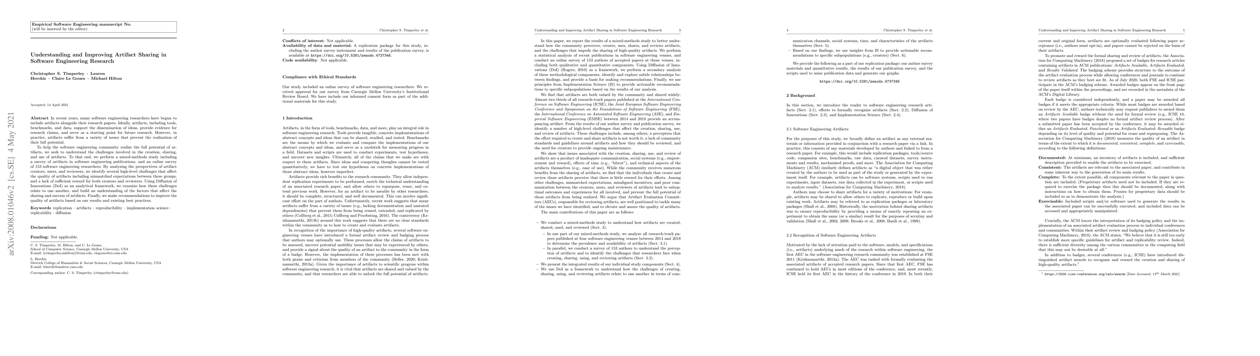 This paper investigates challenges in artifact sharing within software engineering, identifying issues like mismatched expectations and insufficient rewards. Through a mixed-methods study and survey, it proposes recommendations to enhance artifact quality and sharing based on Diffusion of Innovations framework.