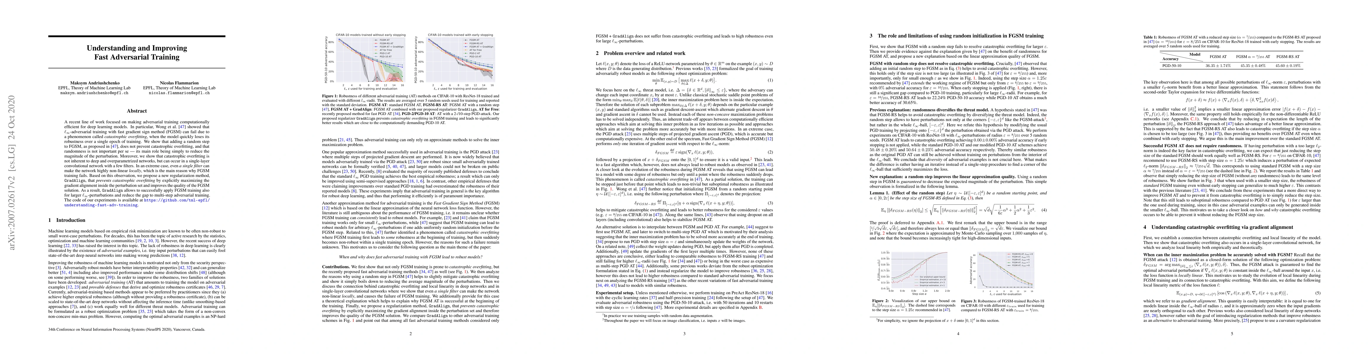 This paper investigates the failure of fast adversarial training methods, specifically FGSM, due to "catastrophic overfitting." It proposes a new regularization method, GradAlign, which maximizes gradient alignment to prevent this failure and improve training robustness, demonstrating its effectiveness even for larger perturbations.