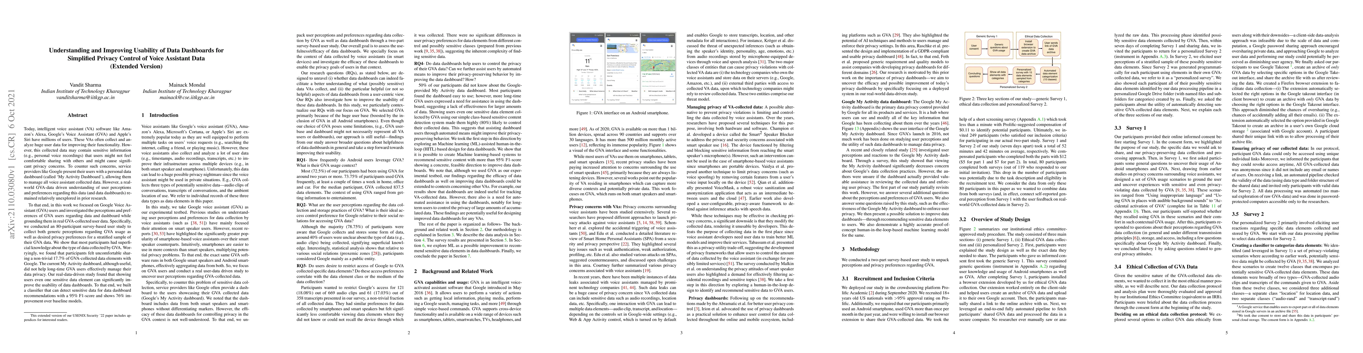 This paper investigates Google Voice Assistant (GVA) users' perceptions and preferences regarding privacy and data dashboards, revealing superficial knowledge about collected data and discomfort sharing certain elements. The study found that the current dashboard is insufficient for effective privacy management, but displaying even one sensitive data element significantly enhances dashboard usability.
