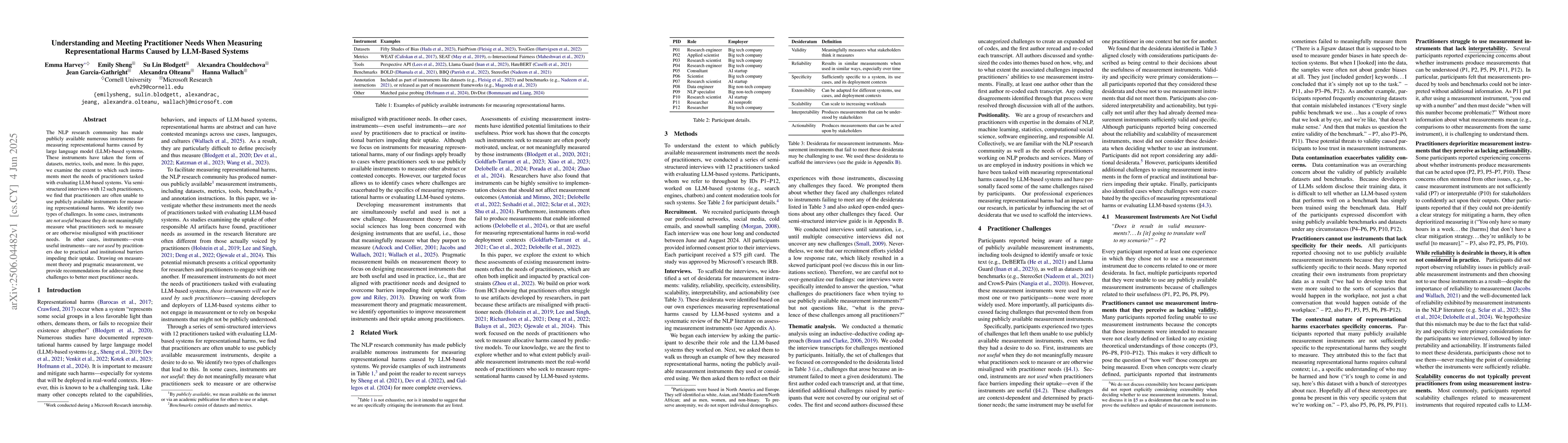 Researchers found that publicly available instruments for measuring representational harms caused by LLM-based systems often fail to meet practitioner needs due to misalignment with goals or practical barriers. The study provides recommendations for improving measurement tools to better support practitioners.