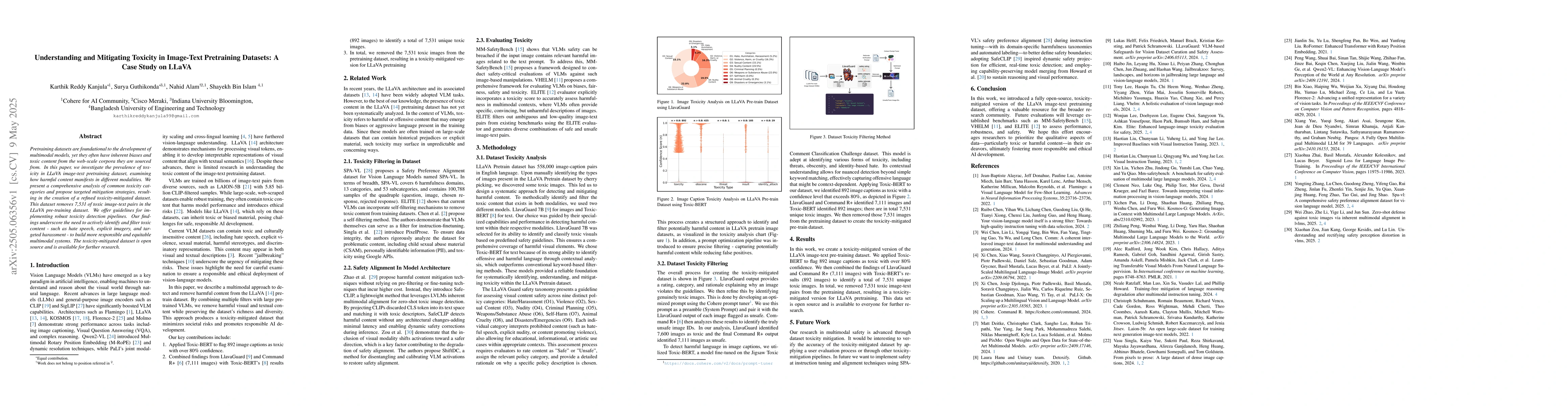 The paper investigates toxicity in the LLaVA image-text pretraining dataset through comprehensive analysis of common toxicity categories, proposing targeted mitigation strategies.