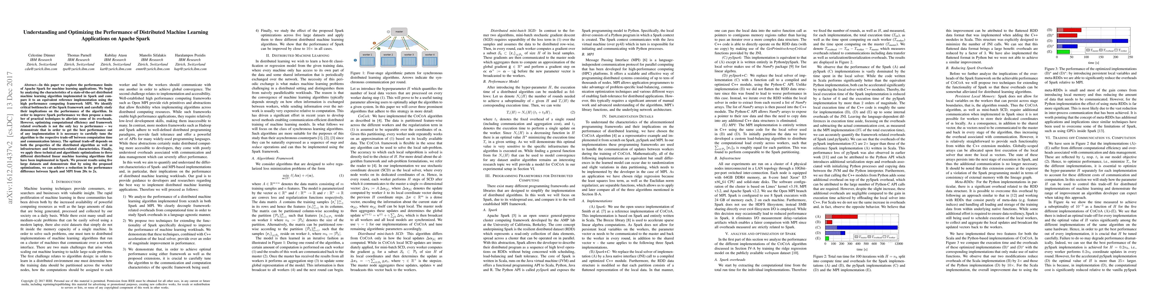 This paper investigates the performance of Apache Spark for distributed machine learning, identifying bottlenecks and proposing optimizations to reduce the performance gap with MPI. It demonstrates that both computational efficiency and algorithmic tuning are crucial for achieving optimal performance, achieving a 10x reduction in performance difference across multiple datasets.