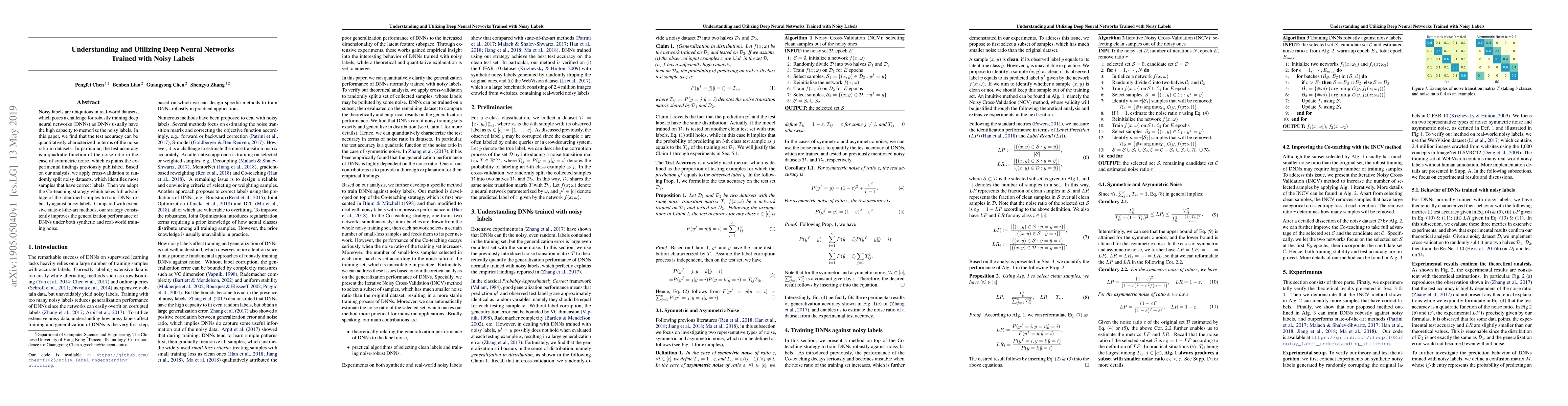 Noisy labels are ubiquitous in real-world datasets, which poses a challenge for robustly training deep neural networks (DNNs) as DNNs usually have the high capacity to memorize the noisy labels. In this paper, we find that the test accuracy can be quantitatively characterized in terms of the noise ratio in datasets. In particular, the test accuracy is a quadratic function of the noise ratio in the case of symmetric noise, which explains the experimental findings previously published. Based on our analysis, we apply cross-validation to randomly split noisy datasets, which identifies most samples that have correct labels. Then we adopt the Co-teaching strategy which takes full advantage of the identified samples to train DNNs robustly against noisy labels. Compared with extensive state-of-the-art methods, our strategy consistently improves the generalization performance of DNNs under both synthetic and real-world training noise.