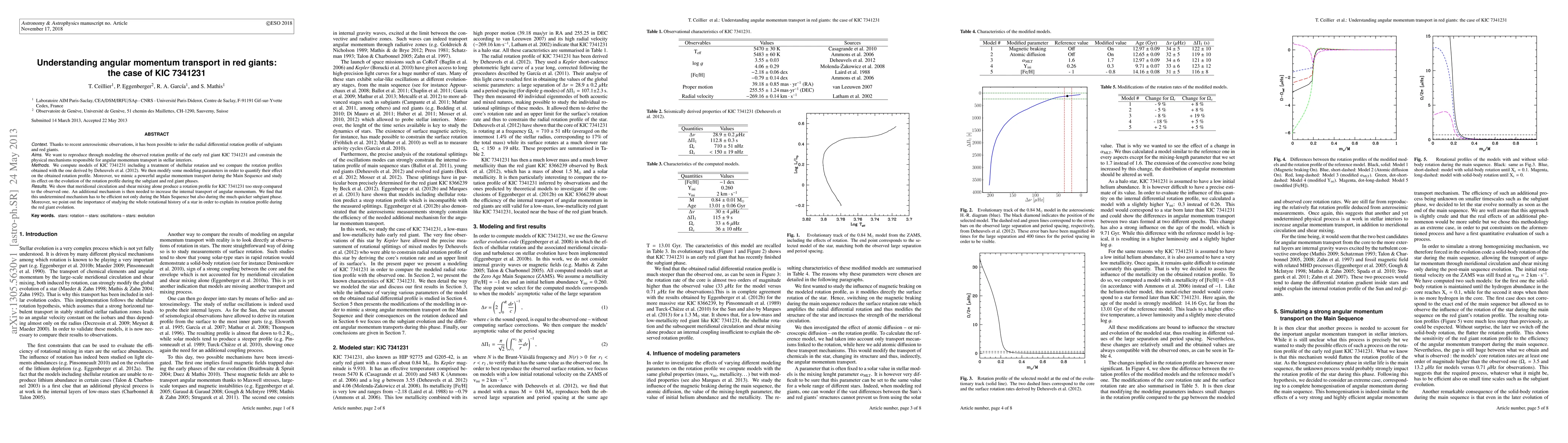 This paper models the rotation profile of the red giant KIC 7341231 to identify mechanisms for angular momentum transport. It finds that meridional circulation and shear mixing are insufficient, suggesting an additional, unidentified mechanism is needed to explain the observed rotation profile, especially during the Main Sequence and subgiant phases.