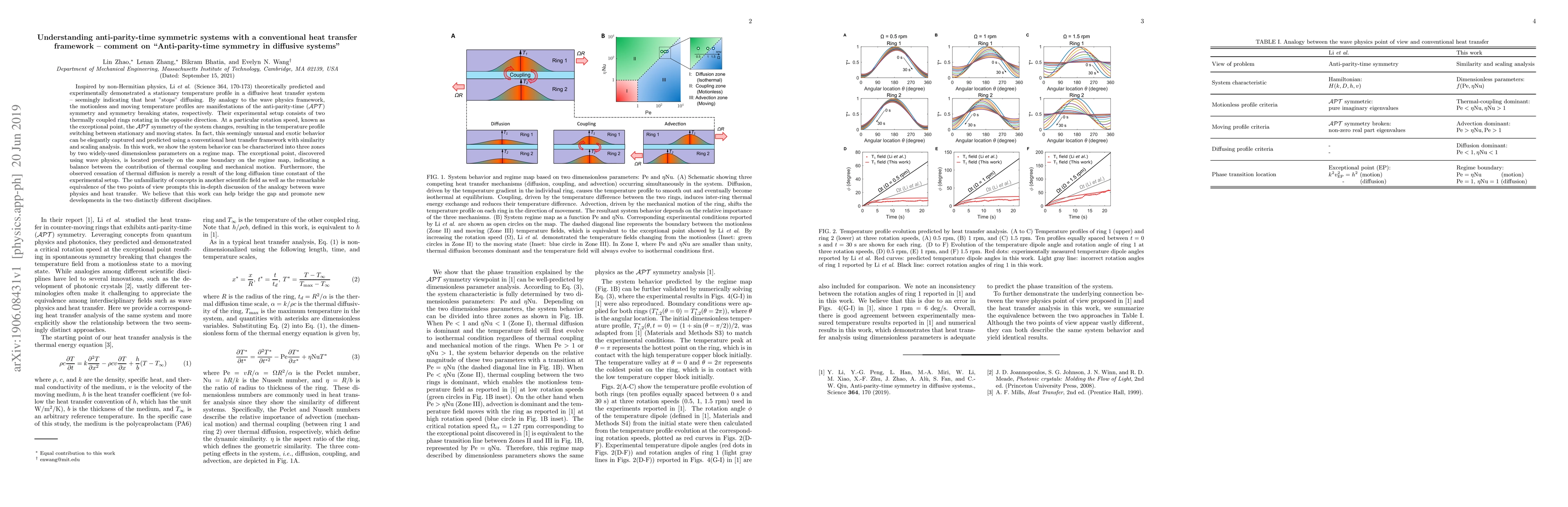 Inspired by non-Hermitian physics, Li et al. (Science 364, 170-173) theoretically predicted and experimentally demonstrated a stationary temperature profile in a diffusive heat transfer system - seemingly indicating that heat "stops" diffusing. By analogy to the wave physics framework, the motionless and moving temperature profiles are manifestations of the anti-parity-time APT symmetry and symmetry breaking states, respectively. Their experimental setup consists of two thermally coupled rings rotating in the opposite direction. At a particular rotation speed, known as the exceptional point, the APT symmetry of the system changes, resulting in the temperature profile switching between stationary and moving states. In fact, this seemingly unusual and exotic behavior can be elegantly captured and predicted using a conventional heat transfer framework with similarity and scaling analysis. In this work, we show the system behavior can be characterized into three zones by two widely-used dimensionless parameters on a regime map. The exceptional point, discovered using wave physics, is located precisely on the zone boundary on the regime map, indicating a balance between the contribution of thermal coupling and mechanical motion. Furthermore, the observed cessation of thermal diffusion is merely a result of the long diffusion time constant of the experimental setup. The unfamiliarity of concepts in another scientific field as well as the remarkable equivalence of the two points of view prompts this in-depth discussion of the analogy between wave physics and heat transfer. We believe that this work can help bridge the gap and promote new developments in the two distinctly different disciplines.