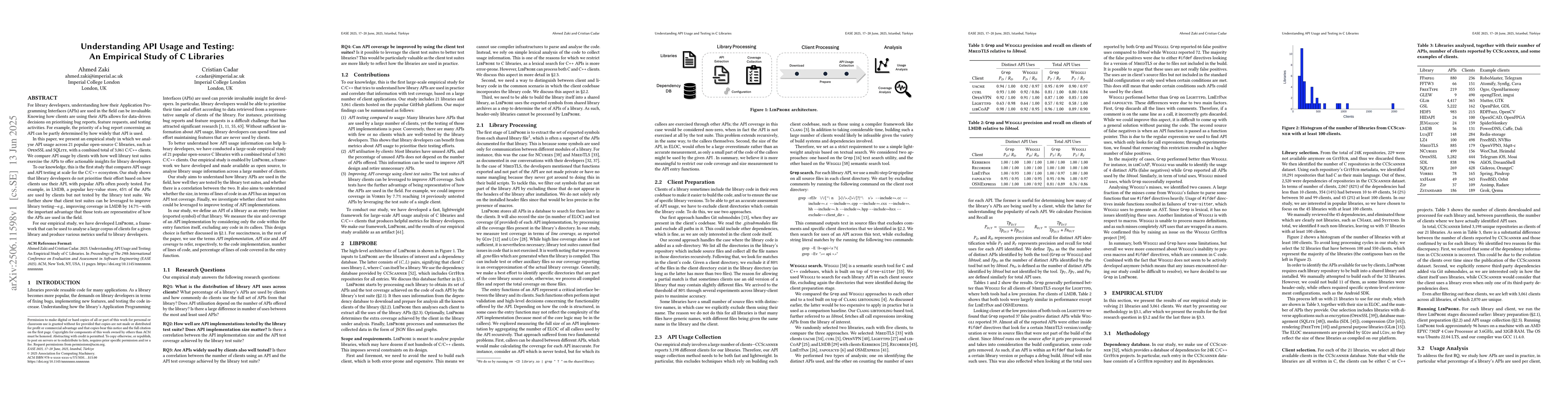 This research used a combination of empirical studies and theoretical analysis to investigate API usage and testing in C/C++ libraries.