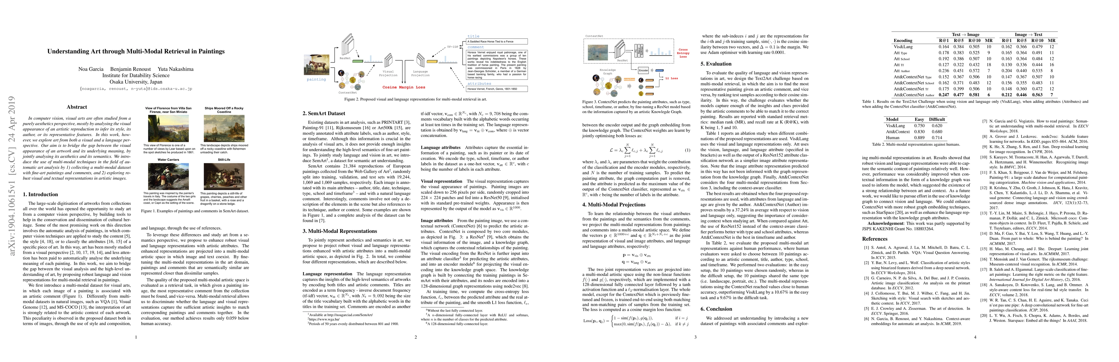 This paper investigates art through multi-modal retrieval, combining visual and language analysis to bridge aesthetics and semantics. It introduces a multi-modal dataset of fine-art paintings with accompanying comments and explores robust visual and textual representations for automatic art analysis.