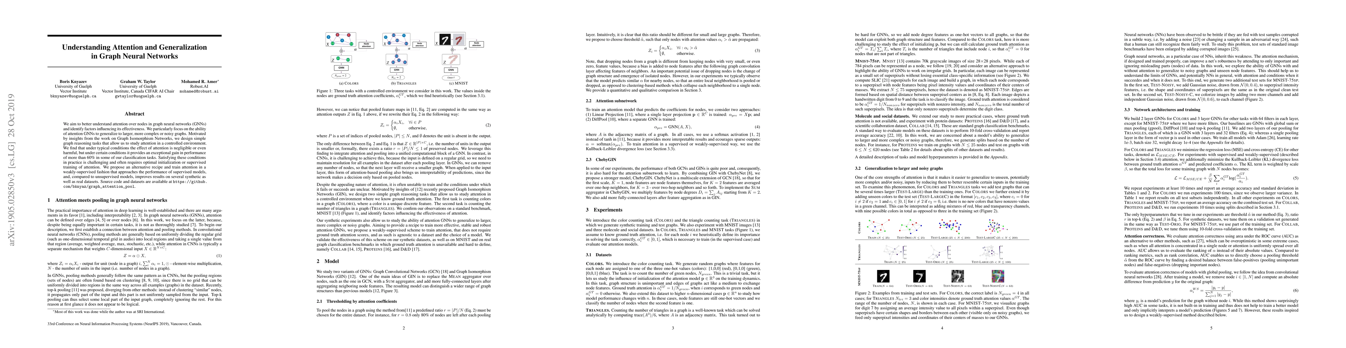 We aim to better understand attention over nodes in graph neural networks (GNNs) and identify factors influencing its effectiveness. We particularly focus on the ability of attention GNNs to generalize to larger, more complex or noisy graphs. Motivated by insights from the work on Graph Isomorphism Networks, we design simple graph reasoning tasks that allow us to study attention in a controlled environment. We find that under typical conditions the effect of attention is negligible or even harmful, but under certain conditions it provides an exceptional gain in performance of more than 60% in some of our classification tasks. Satisfying these conditions in practice is challenging and often requires optimal initialization or supervised training of attention. We propose an alternative recipe and train attention in a weakly-supervised fashion that approaches the performance of supervised models, and, compared to unsupervised models, improves results on several synthetic as well as real datasets. Source code and datasets are available at https://github.com/bknyaz/graph_attention_pool.