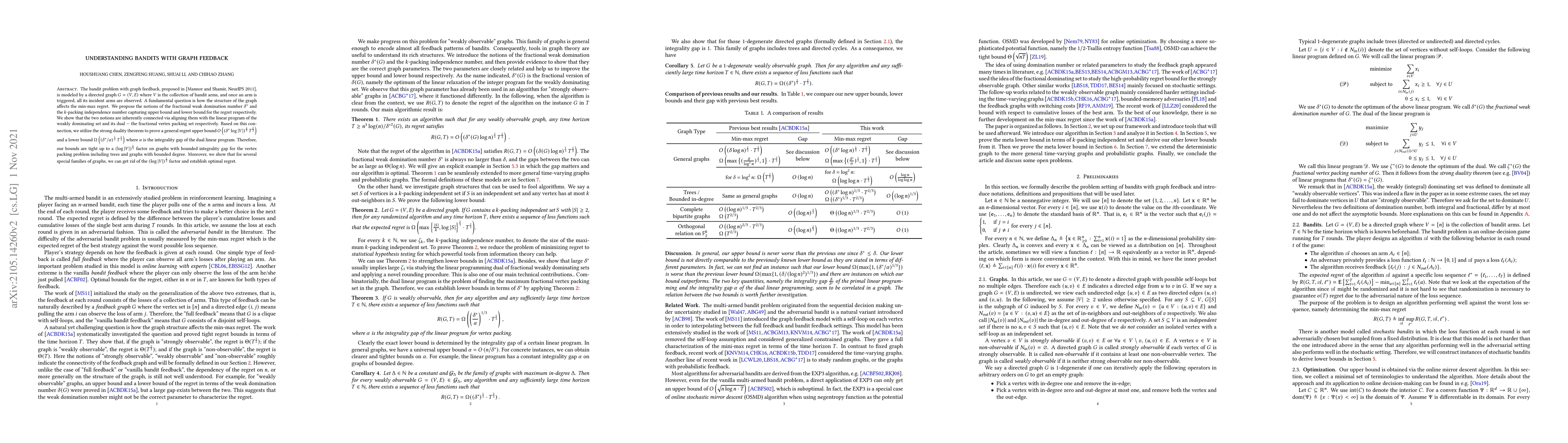 This research paper investigates the bandit problem with graph feedback, proposing new notions of fractional weak domination number and k-packing independence number to analyze regret bounds. It establishes tight upper and lower bound regret expressions.