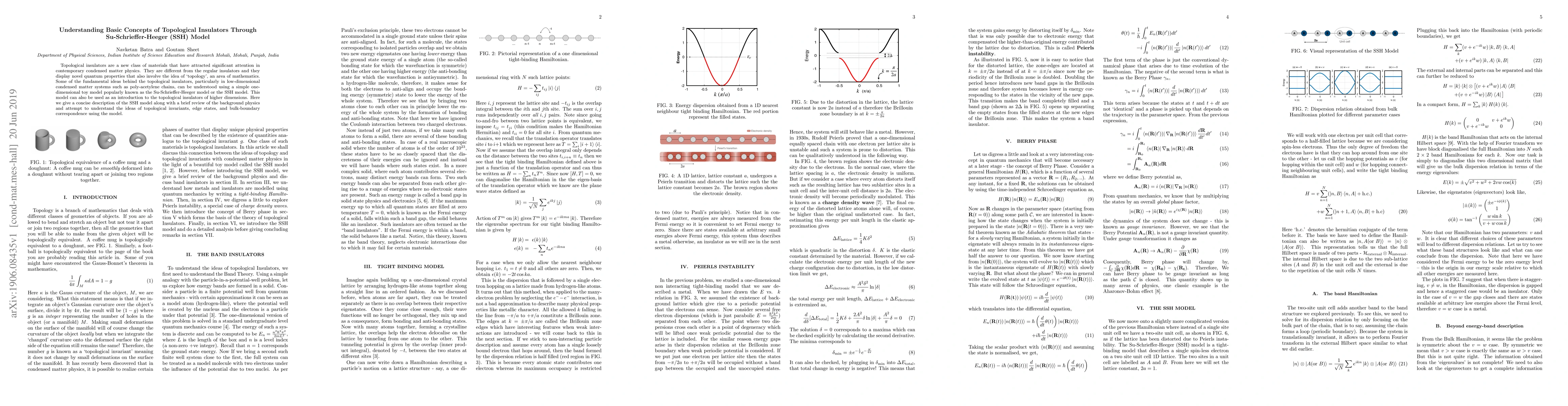This paper provides a concise overview of the Su-Schrieffer-Heeger (SSH) model, a fundamental one-dimensional toy model used to understand topological insulators. It reviews the background physics and explores concepts like topological invariants, edge states, and the bulk-boundary correspondence through this model.