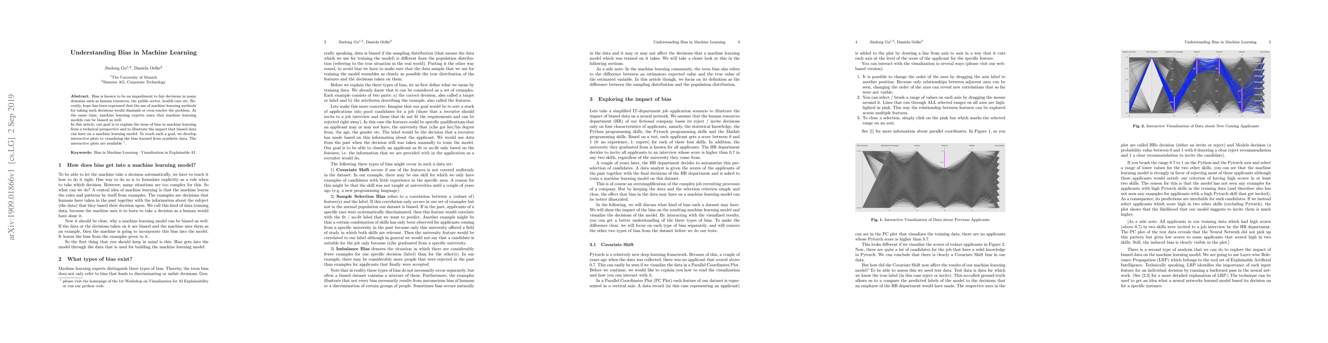 This paper explores the technical aspects of bias in machine learning, highlighting how biased data can adversely affect model outcomes. It employs interactive visualizations to illustrate the impact of bias using synthetic data.