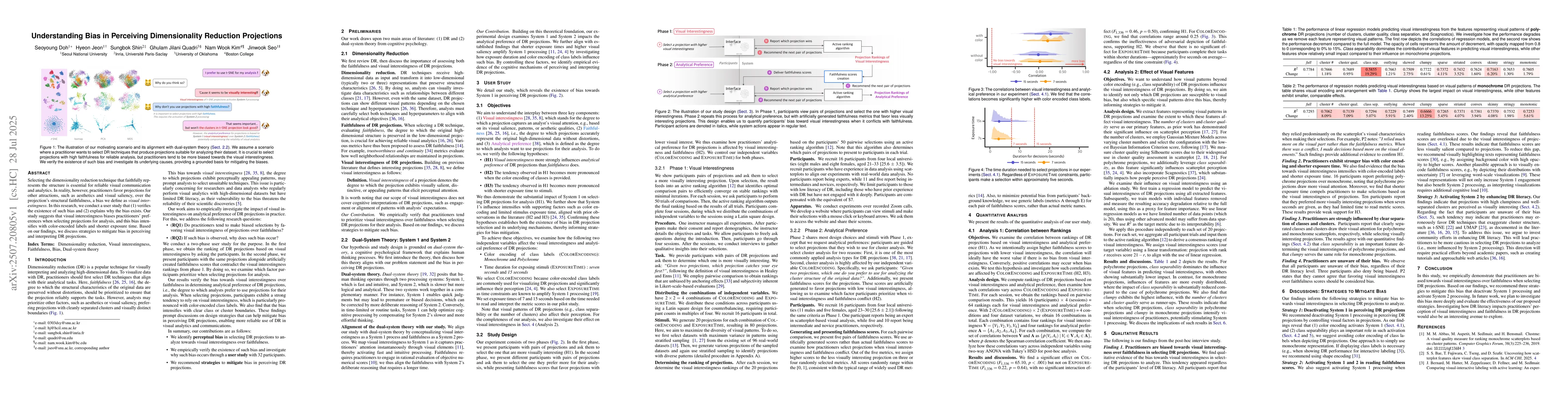 Selecting the dimensionality reduction technique that faithfully represents the structure is essential for reliable visual communication and analytics. In reality, however, practitioners favor projections for other attractions, such as aesthetics and visual saliency, over the projection's structural faithfulness, a bias we define as visual interestingness. In this research, we conduct a user study that (1) verifies the existence of such bias and (2) explains why the bias exists. Our study suggests that visual interestingness biases practitioners' preferences when selecting projections for analysis, and this bias intensifies with color-encoded labels and shorter exposure time. Based on our findings, we discuss strategies to mitigate bias in perceiving and interpreting DR projections.