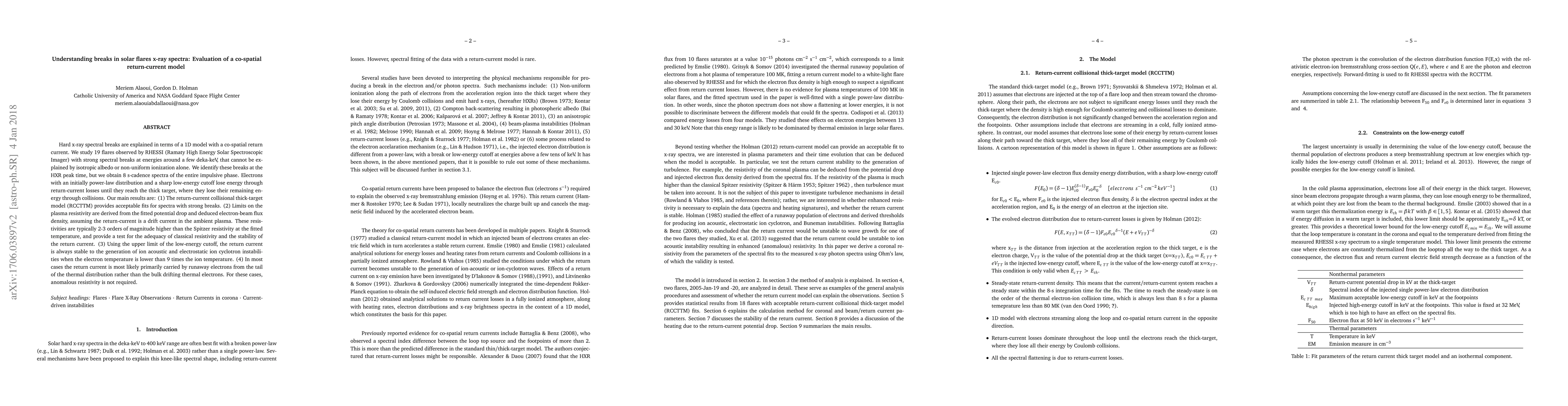 Hard x-ray spectral breaks are explained in terms of a 1D model with a co-spatial return current. We study 19 flares observed by RHESSI (Ramaty High Energy Solar Spectroscopic Imager) with strong spectral breaks at energies around a few deka-keV, that cannot be explained by isotropic albedo or non-uniform ionization alone. We identify these breaks at the HXR peak time, but we obtain 8 s-cadence spectra of the entire impulsive phase. Electrons with an initially power-law distribution and a sharp low-energy cutoff lose energy through return-current losses until they reach the thick target, where they lose their remaining energy through collisions. Our main results are: (1) The return-current collisional thick-target model (RCCTTM) provides acceptable fits for spectra with strong breaks. (2) Limits on the plasma resistivity are derived from the fitted potential drop and deduced electron-beam flux density, assuming the return-current is a drift current in the ambient plasma. These resistivities are typically 2-3 orders of magnitude higher than the Spitzer resistivity at the fitted temperature, and provide a test for the adequacy of classical resistivity and the stability of the return current. (3) Using the upper limit of the low-energy cutoff, the return current is always stable to the generation of ion acoustic and electrostatic ion cyclotron instabilities when the electron temperature is lower than 9 times the ion temperature. (4) In most cases the return current is most likely primarily carried by runaway electrons from the tail of the thermal distribution rather than the bulk drifting thermal electrons. For these cases, anomalous resistivity is not required.