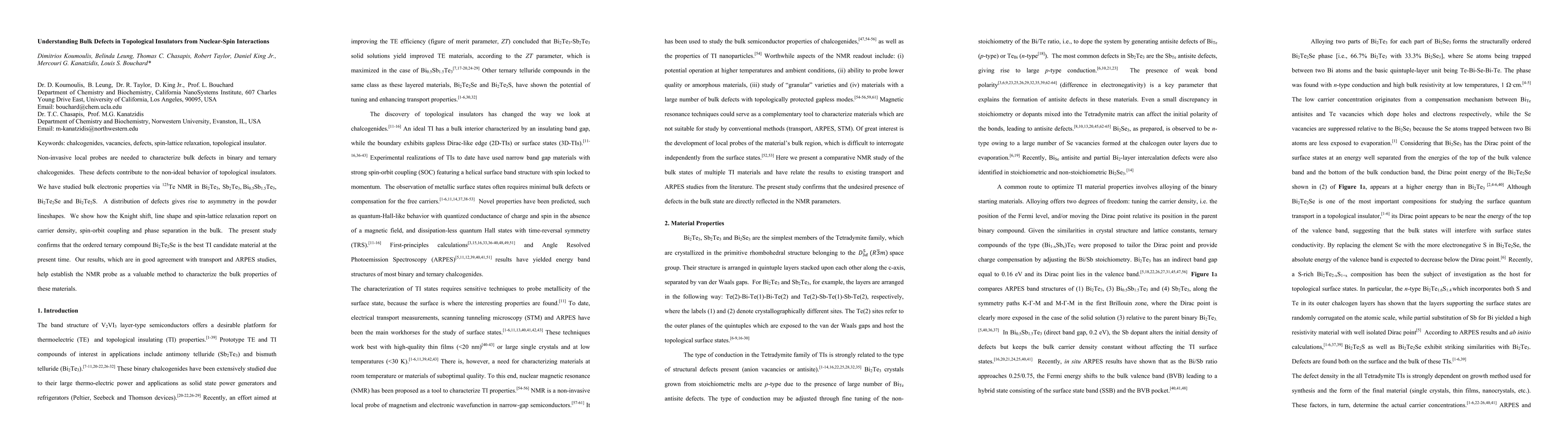 Researchers used $^{125}$Te NMR to study defects in topological insulators, revealing their impact on material properties and confirming Bi$_2$Te$_2$Se as the best TI candidate material.