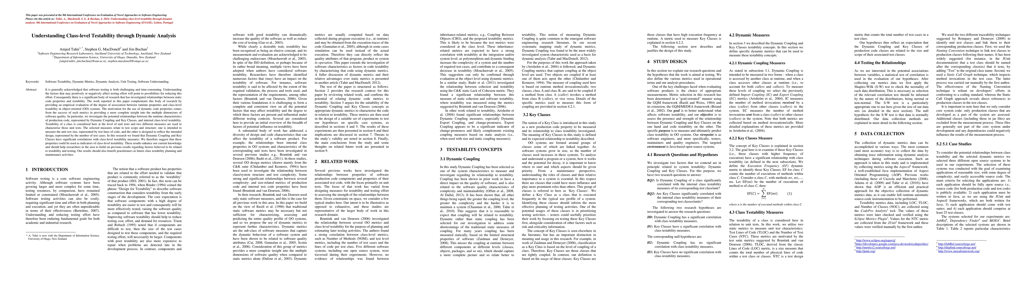 This paper investigates the relationship between runtime properties, specifically Dynamic Coupling and Key Classes, and class-level testability in object-oriented systems. The study found significant correlations between these dynamic properties and measures of unit test size and design, suggesting they could serve as indicators for class testability, aiding both future research and practical testing efforts.