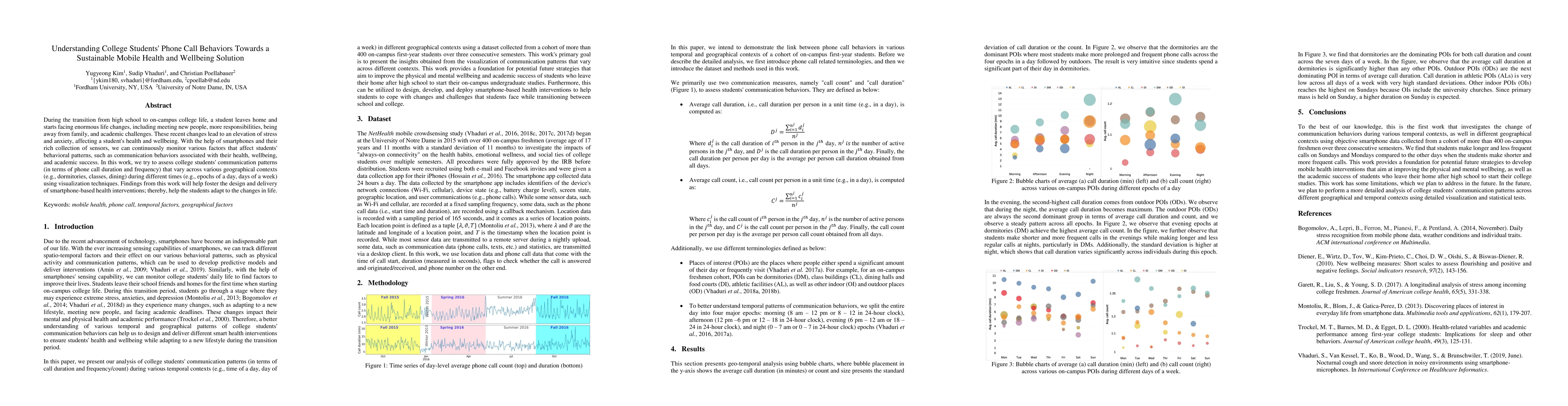 This paper examines college students' phone call behaviors to understand how these patterns correlate with their wellbeing during the transition to campus life. The study uses visualization techniques to analyze call duration and frequency across different contexts and times, aiming to inform the development of mobile health interventions.