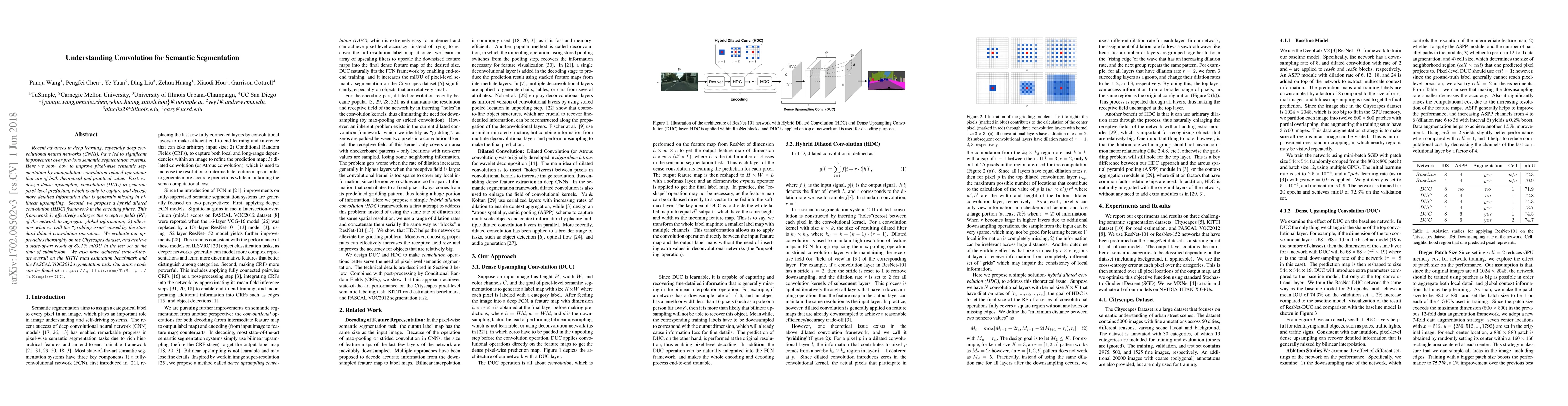 This paper proposes advanced convolutional techniques, including dense upsampling convolution (DUC) and hybrid dilated convolution (HDC), to enhance pixel-wise semantic segmentation. The methods achieve state-of-the-art results on multiple datasets, demonstrating significant improvements over previous systems.