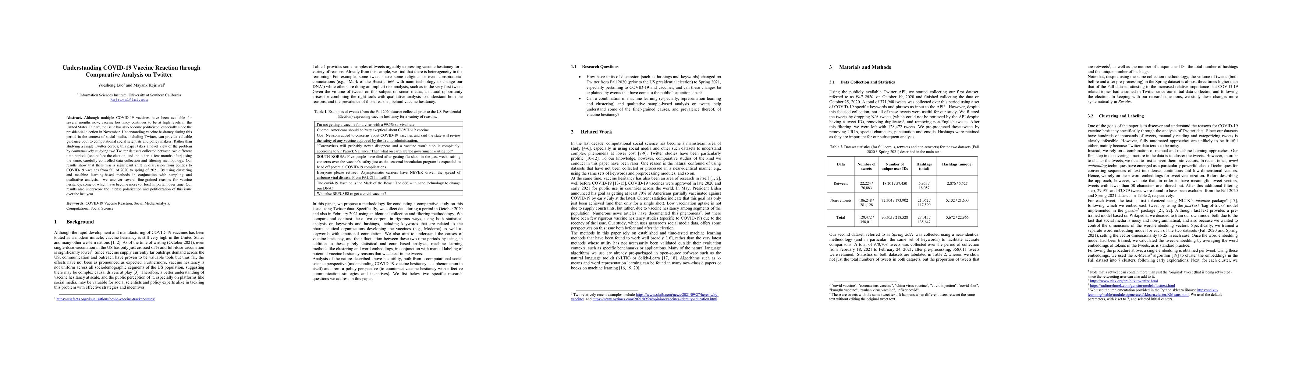The paper presents a methodology for conducting comparative analyses on raw corpora collected from Twitter, combining quantitative and qualitative analyses to uncover reasons for vaccine hesitancy.