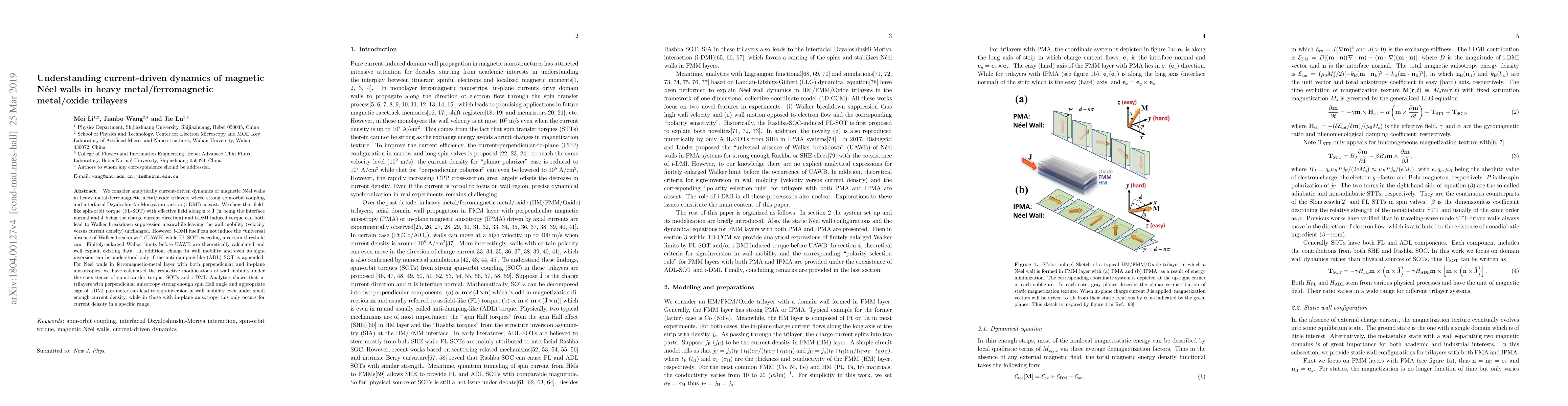 We consider analytically current-driven dynamics of magnetic N\'{e}el walls in heavy metal/ferromagnetic metal/oxide trilayers where strong spin-orbit coupling and interfacial Dzyaloshinskii-Moriya interaction (i-DMI) coexist. We show that field-like spin-orbit torque (FL-SOT) with effective field along $\mathbf{n}\times\hat{\mathbf{J}}$ ($\mathbf{n}$ being the interface normal and $\hat{\mathbf{J}}$ being the charge current direction) and i-DMI induced torque can both lead to Walker breakdown suppression meanwhile leaving the wall mobility (velocity versus current density) unchanged. However, i-DMI itself can not induce the "universal absence of Walker breakdown" (UAWB) while FL-SOT exceeding a certain threshold can. Finitely-enlarged Walker limits before UAWB are theoretically calculated and well explain existing data. In addition, change in wall mobility and even its sign-inversion can be understood only if the anti-damping-like (ADL) SOT is appended. For N\'{e}el walls in ferromagnetic-metal layer with both perpendicular and in-plane anisotropies, we have calculated the respective modifications of wall mobility under the coexistence of spin-transfer torque, SOTs and i-DMI. Analytics shows that in trilayers with perpendicular anisotropy strong enough spin Hall angle and appropriate sign of i-DMI parameter can lead to sign-inversion in wall mobility even under small enough current density, while in those with in-plane anisotropy this only occurs for current density in a specific range.