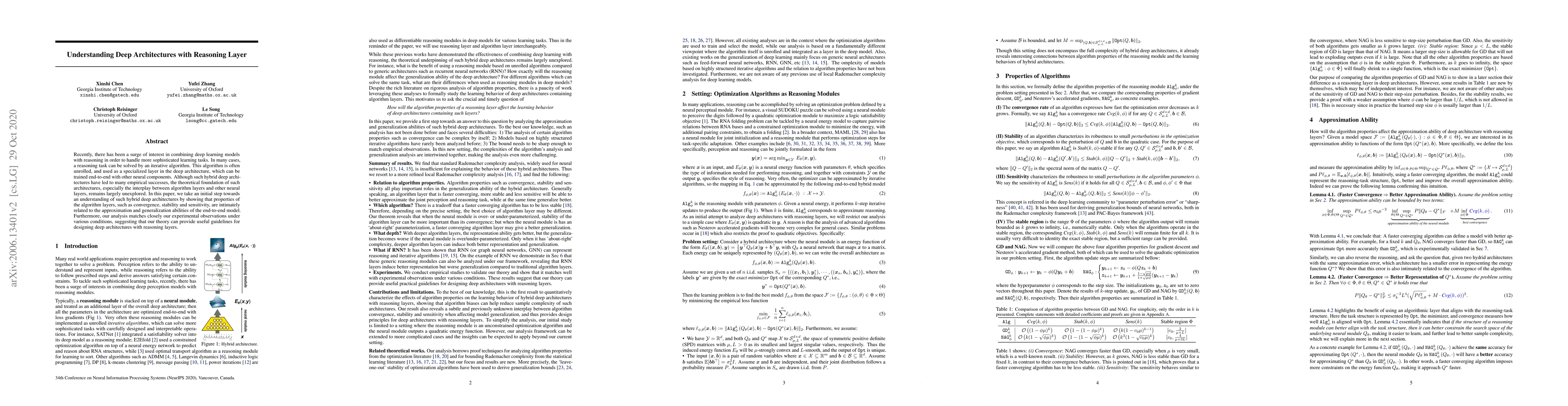 This paper explores the theoretical underpinnings of hybrid deep architectures that combine deep learning models with reasoning layers. It demonstrates that the properties of reasoning layers, such as convergence and stability, significantly influence the model's approximation and generalization capabilities, providing useful guidelines for designing such architectures.