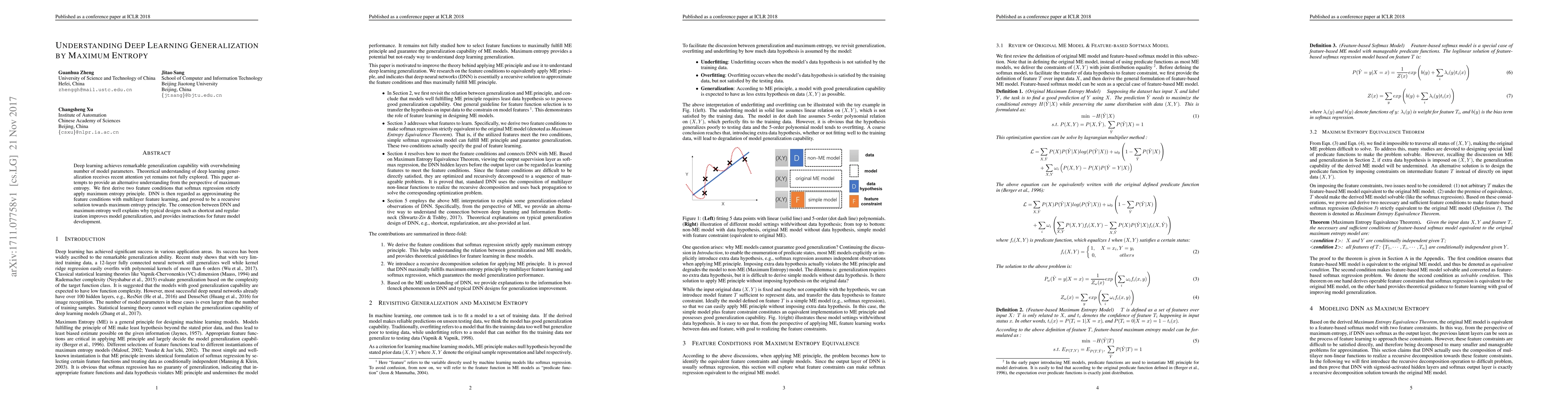 This paper explores the generalization capability of deep learning through the lens of maximum entropy, showing that deep neural networks (DNNs) approximate feature conditions that softmax regression strictly adheres to, thus providing a recursive solution towards the maximum entropy principle. The findings explain why design choices like shortcuts and regularization improve generalization and offer guidance for future model development.