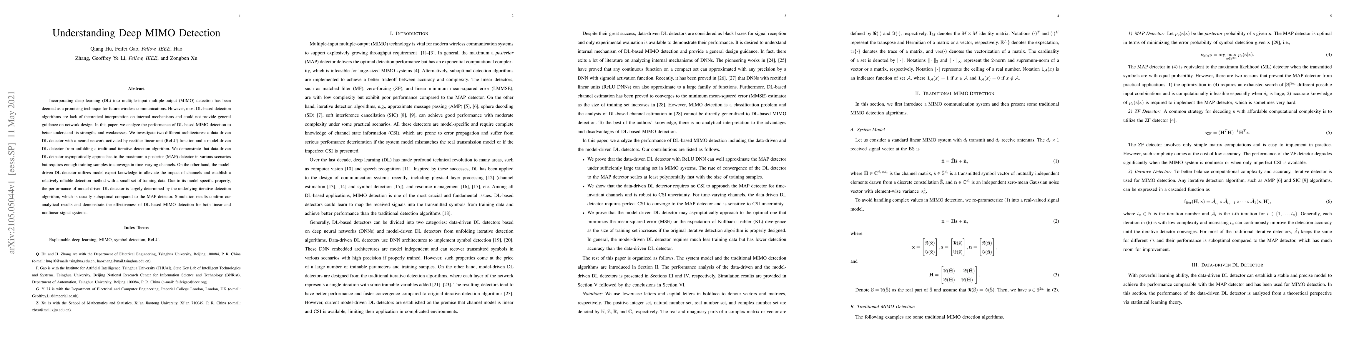 This paper analyzes the performance of deep learning-based MIMO detection methods, comparing data-driven and model-driven architectures. The data-driven detector approaches the optimal MAP detector but requires extensive training, while the model-driven detector leverages expert knowledge for reliable performance with fewer samples.