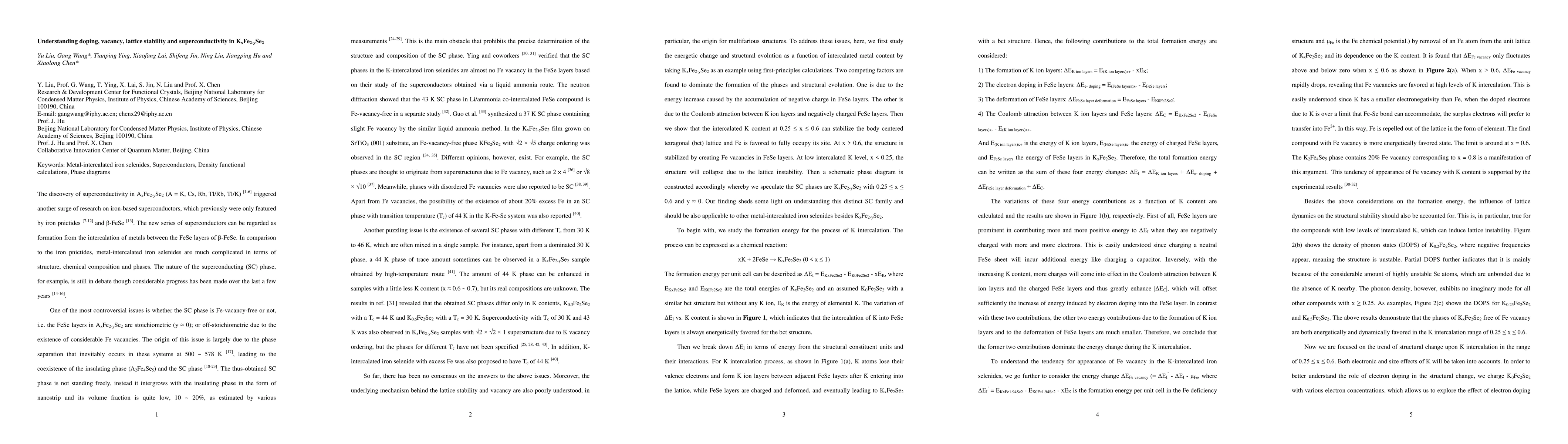 Metal-intercalated iron selenides are a class of superconductors that have received much attention but are less understood in comparison with their FeAs-based counterparts. Here, the controversial issues such as Fe vacancy, the real phase responsible for superconductivity, and lattice stability have been addressed based on first-principles calculations. New insights into the distinct features in terms of carrier doping have been revealed.