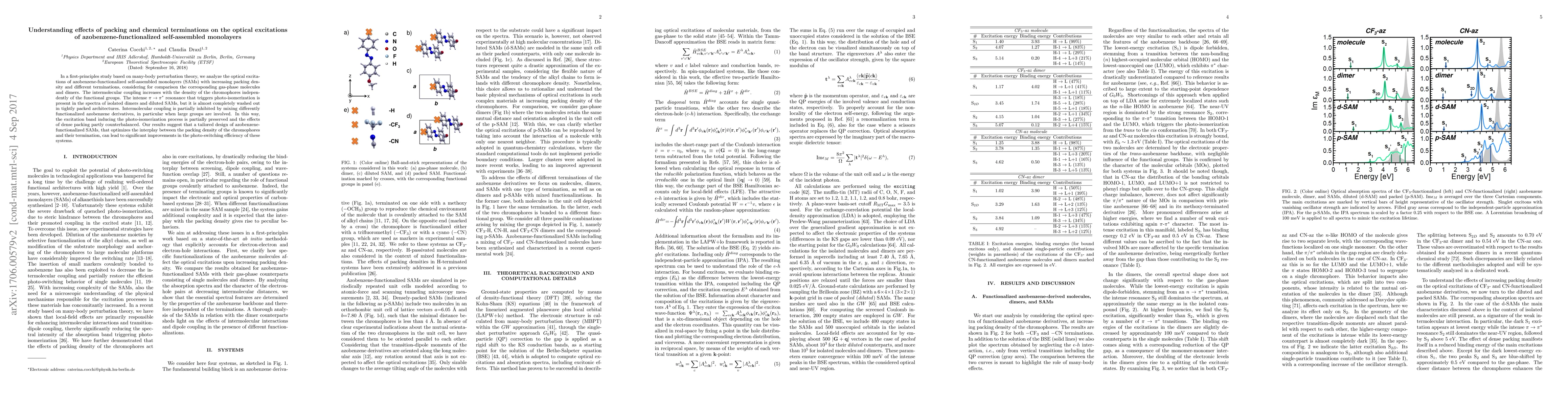 In a first-principles study based on many-body perturbation theory, we analyze the optical excitations of azobenzene-functionalized SAMs with increasing packing density and different terminations, considering for comparison the corresponding gas-phase molecules and dimers. The intermolecular coupling increases with the density of the chromophores independently of the functional groups. The intense $\pi\rightarrow\pi^*$ resonance that triggers photo-isomerization is present in the spectra of isolated dimers and diluted SAMs, but it is almost completely washed out in tightly packed architectures. Intermolecular coupling is partially inhibited by mixing differently functionalized azobenzene derivatives, in particular when large groups are involved. In this way the excitation band inducing the photo-isomerization process is partially preserved and the effects of dense packing partly counterbalanced. Our results suggest that a tailored design of azobenzene-functionalized SAMs, that optimizes the interplay between the packing density of the chromophores and their termination, can lead to significant improvements in the photo-switching efficiency of these systems.