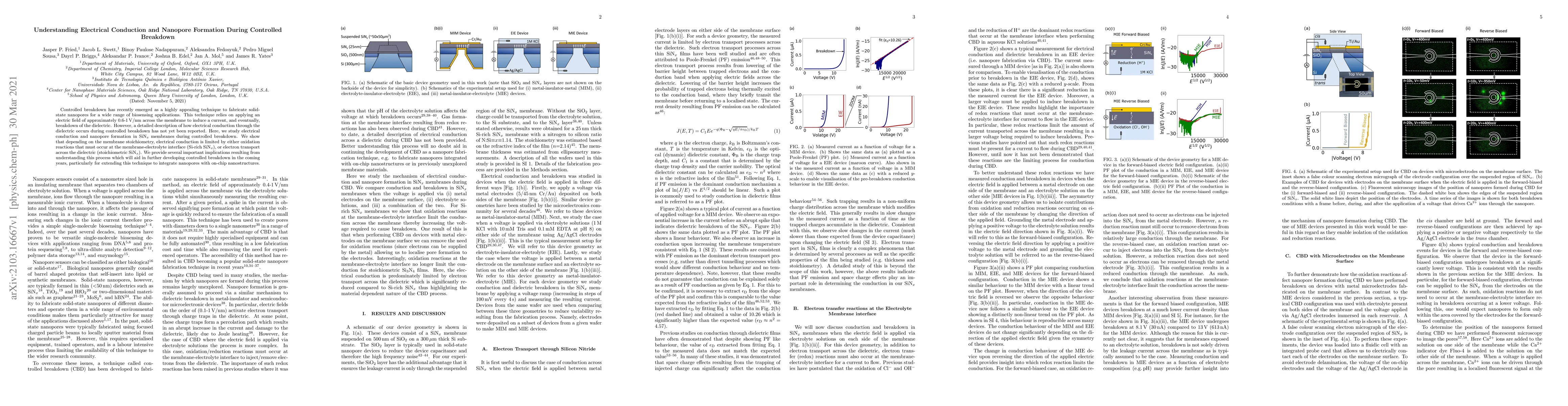 Controlled breakdown has recently emerged as a highly appealing technique to fabricate solid-state nanopores for a wide range of biosensing applications. This technique relies on applying an electric field of approximately 0.6-1 V/nm across the membrane to induce a current, and eventually, breakdown of the dielectric. However, a detailed description of how electrical conduction through the dielectric occurs during controlled breakdown has not yet been reported. Here, we study electrical conduction and nanopore formation in SiN$_x$ membranes during controlled breakdown. We show that depending on the membrane stoichiometry, electrical conduction is limited by either oxidation reactions that must occur at the membrane-electrolyte interface (Si-rich SiN$_x$), or electron transport across the dielectric (stoichiometric Si$_3$N$_4$). We provide several important implications resulting from understanding this process which will aid in further developing controlled breakdown in the coming years, particularly for extending this technique to integrate nanopores with on-chip nanostructures.