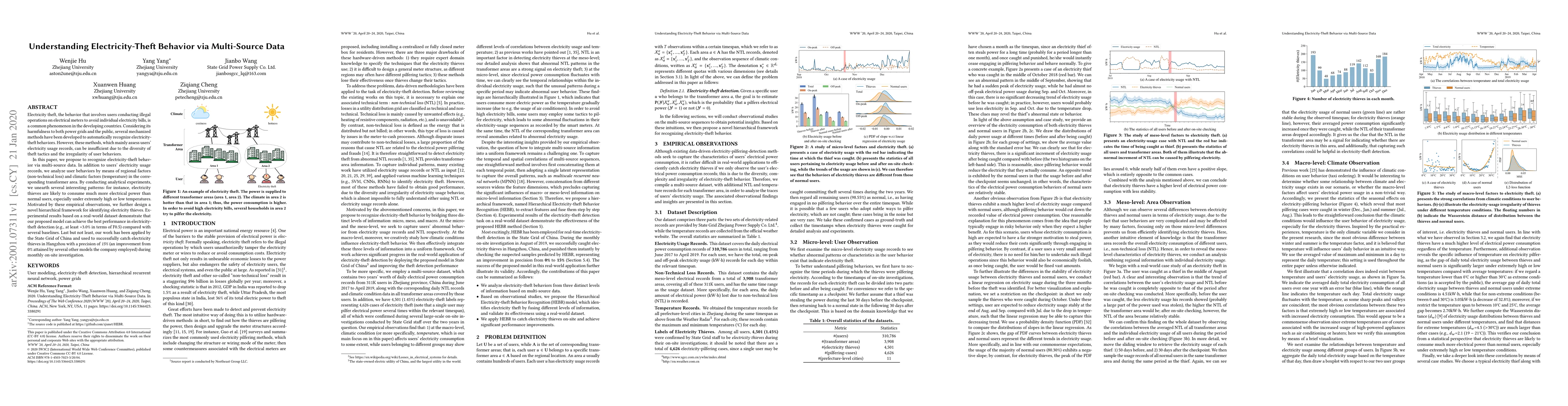 This paper proposes a method for detecting electricity theft using multi-source data, including electricity usage records, regional factors, and climatic conditions. The study finds that thieves often consume more power under extreme temperatures and introduces a hierarchical framework that outperforms existing models, achieving a 3% improvement in F0.5 score. The model has been successfully applied in Hangzhou, China, to catch thieves with a 15% precision.