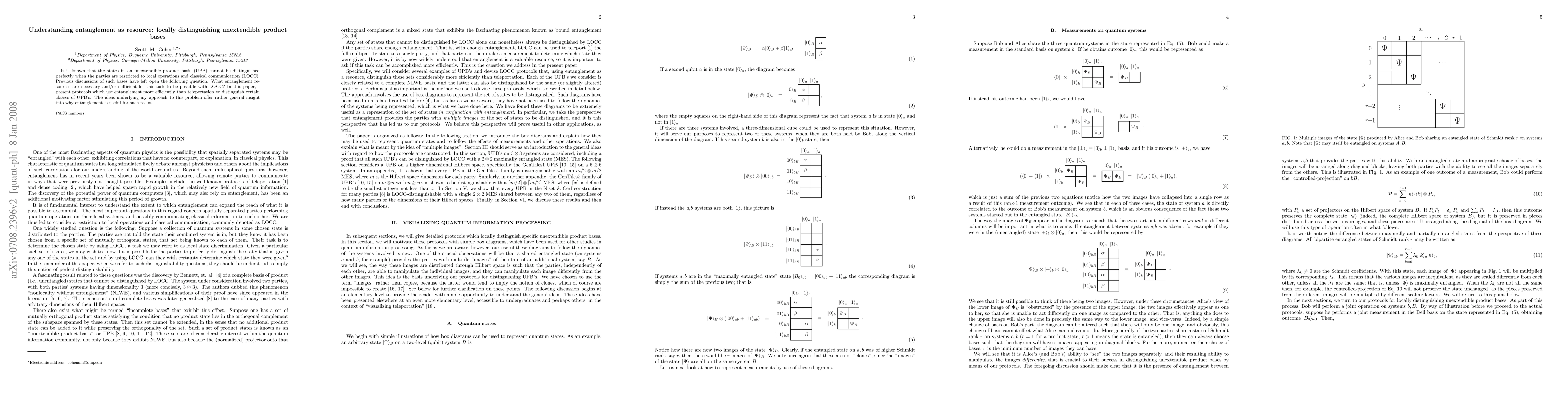 Researchers discovered protocols that efficiently distinguish unextendible product bases using entanglement, offering insight into the role of entanglement in quantum information processing. These findings shed light on the necessary entanglement resources for perfect local operation and classical communication distinction.