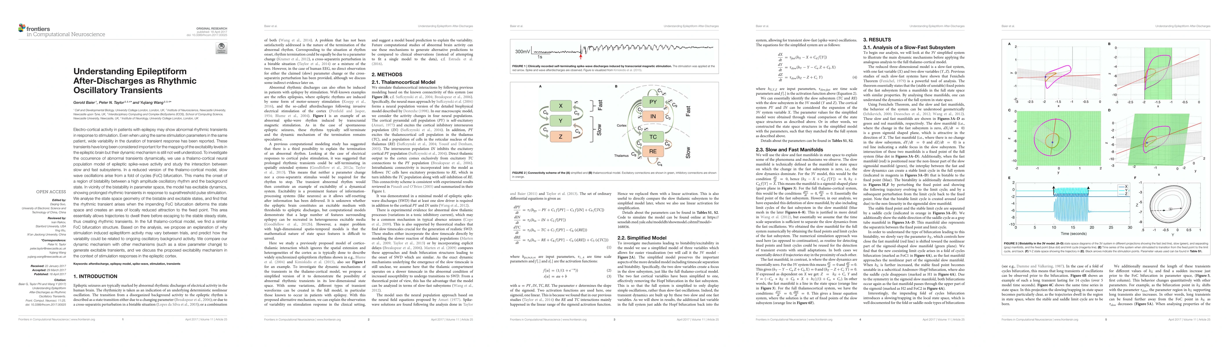 This paper explores the dynamic mechanisms underlying epileptiform after-discharges using a thalamo-cortical model, revealing that rhythmic transients arise due to bistability near a fold of cycles bifurcation, which creates an area of reduced attraction in the state space, leading to prolonged transients. The study suggests variability in these responses is linked to the ongoing oscillatory background activity.