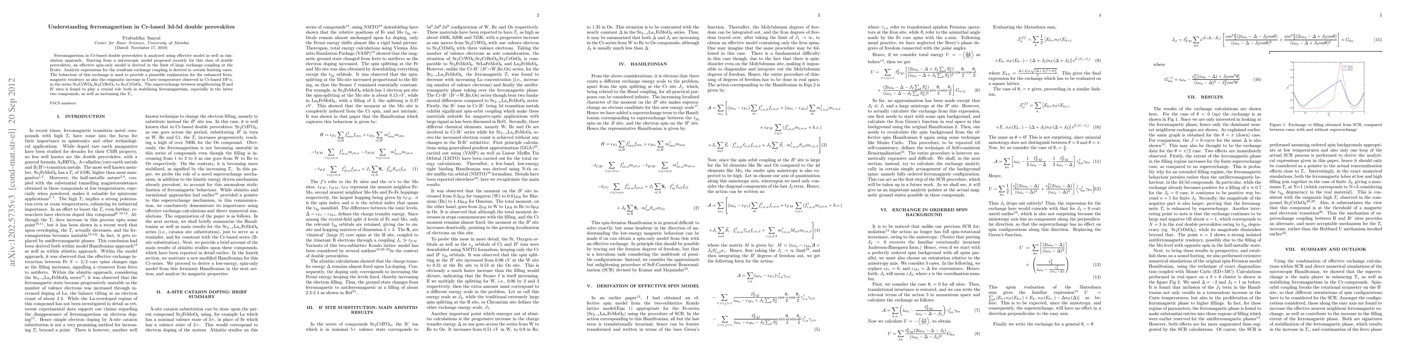 Ferromagnetism in Cr-based double perovskites is analyzed using effective model as well as simulation approach. Starting from a microscopic model proposed recently for this class of double perovskites, an effective spin-only model is derived in the limit of large exchange coupling at the B-site. Analytic expressions for the resultant exchange coupling is derived in certain limiting cases. The behaviour of this exchange is used to provide a plausible explanation for the enhanced ferromagnetic tendency as also the enigmatic increase in Curie temperature observed in Cr-based DP-s, in the series Sr$_{2}$CrWO$_{6}$,Sr$_{2}$CrReO$_{6}$ to Sr$_{2}$CrOsO$_{6}$. The superexchange between neighbouring B and B' sites is found to play a crucial role both in stabilizing ferromagnetism, especially in the latter two compounds, as well as increasing the T$_{c}$.