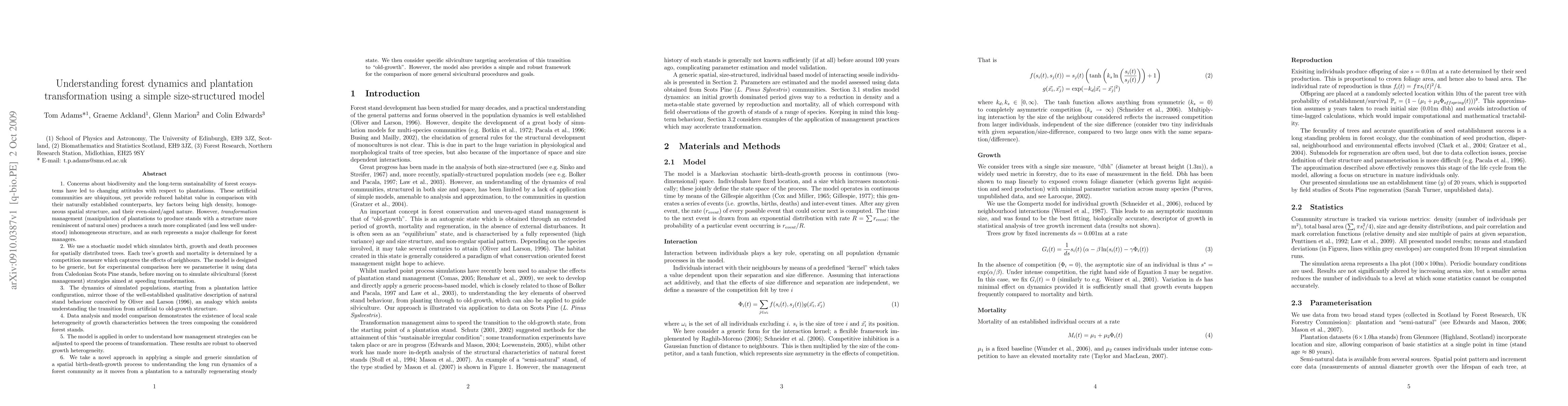 This paper uses a simple size-structured model to simulate the dynamics of forest plantations, aiming to understand their transformation into more natural, uneven-aged stands. The study focuses on Scots Pine stands, analyzing the model's predictions for silvicultural practices and stand transformation.